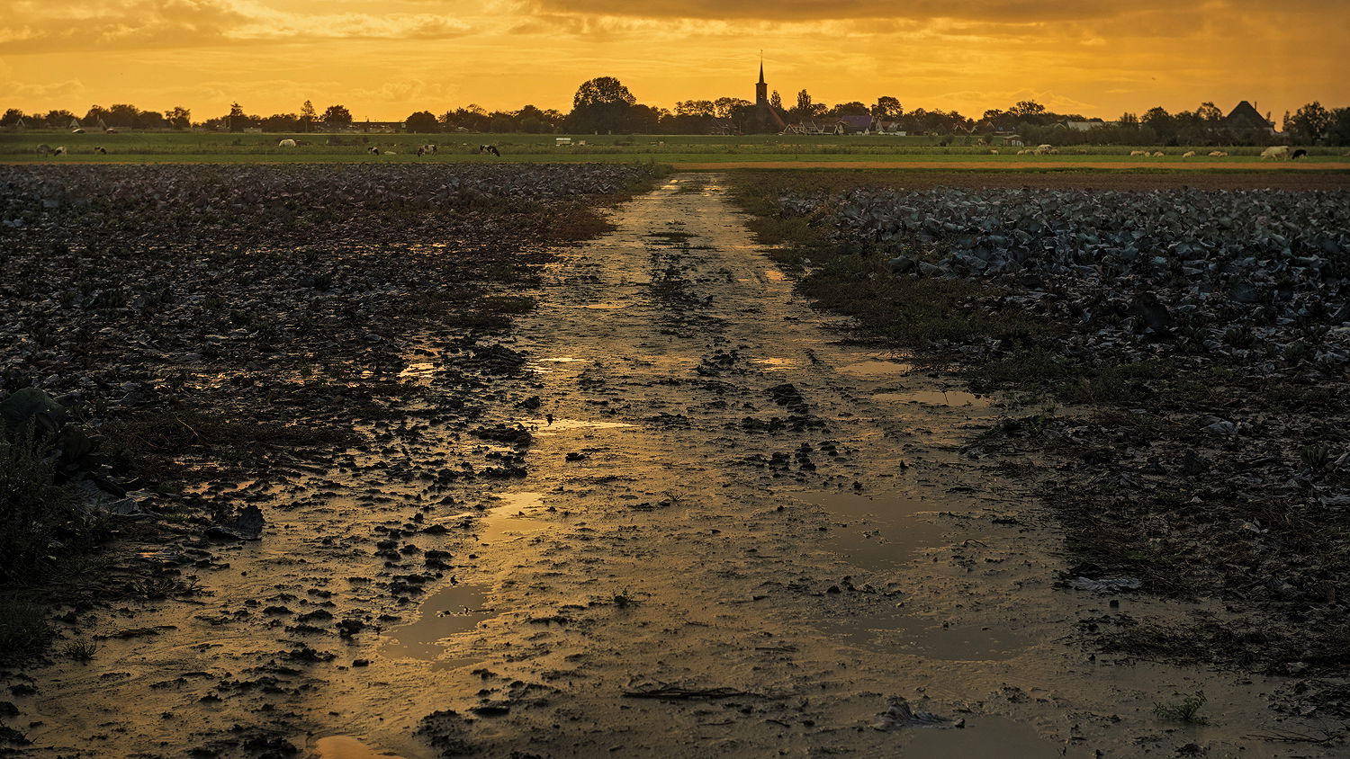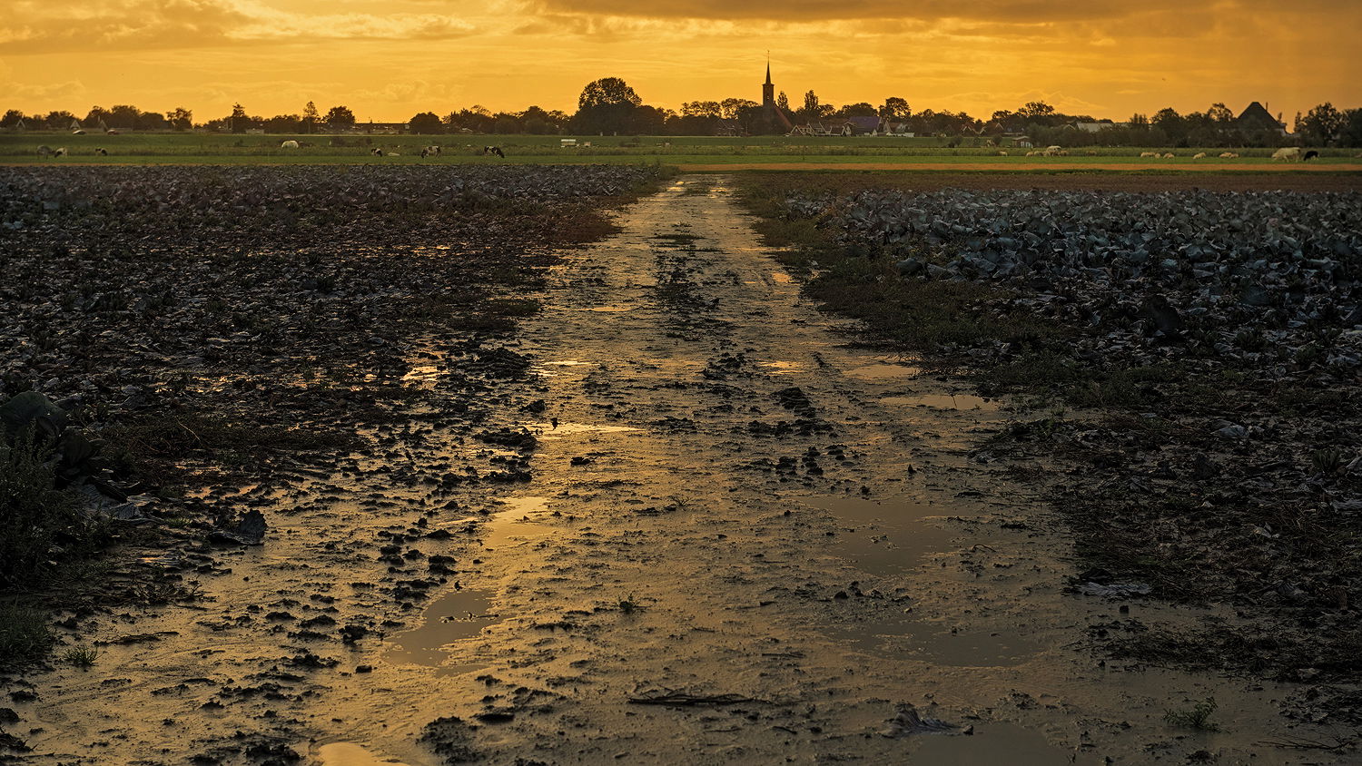 I like these sort of images that show the natural world as opposed to the pretty world. The artichoke fields near me looked like this after the winter rains. This also tells a nice story of a community supported by agriculture around it. I like it as is although you could raise the darker tones in the cabbage field.