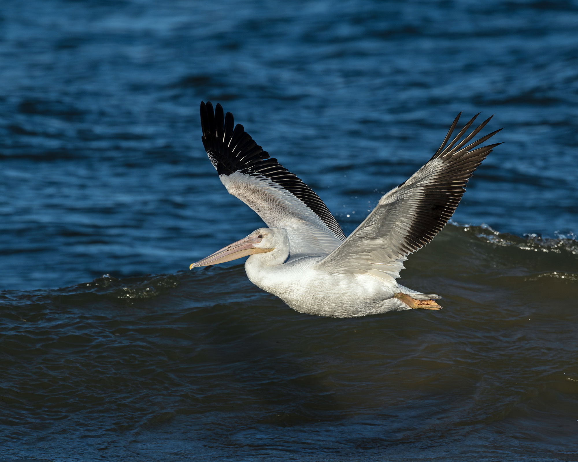 I spent Friday and Saturday at Whitefish Point and was surprised to find a juvenile American White Pelican up at the point. The bird provided a close to shore flyby as waves crashed the shoreline. The sun was starting to set so the lighting was quite optimal for this shot.