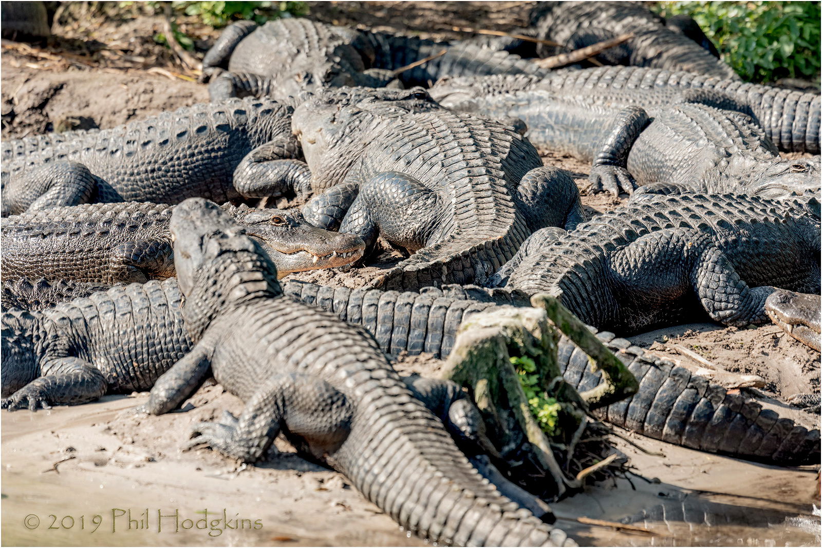 I never checked how many alligators were at the Alligator Farm, but I would guess in the hundreds. They were captive and regularly fed, unlike the birds in the rookery overhead. They were also large and scary. While I was there, the male alligator chorus of 15 to 20 males bellowed out a mating call that was, to say the least, very impressive. You could see the water vibrating underneath the boardwalk.