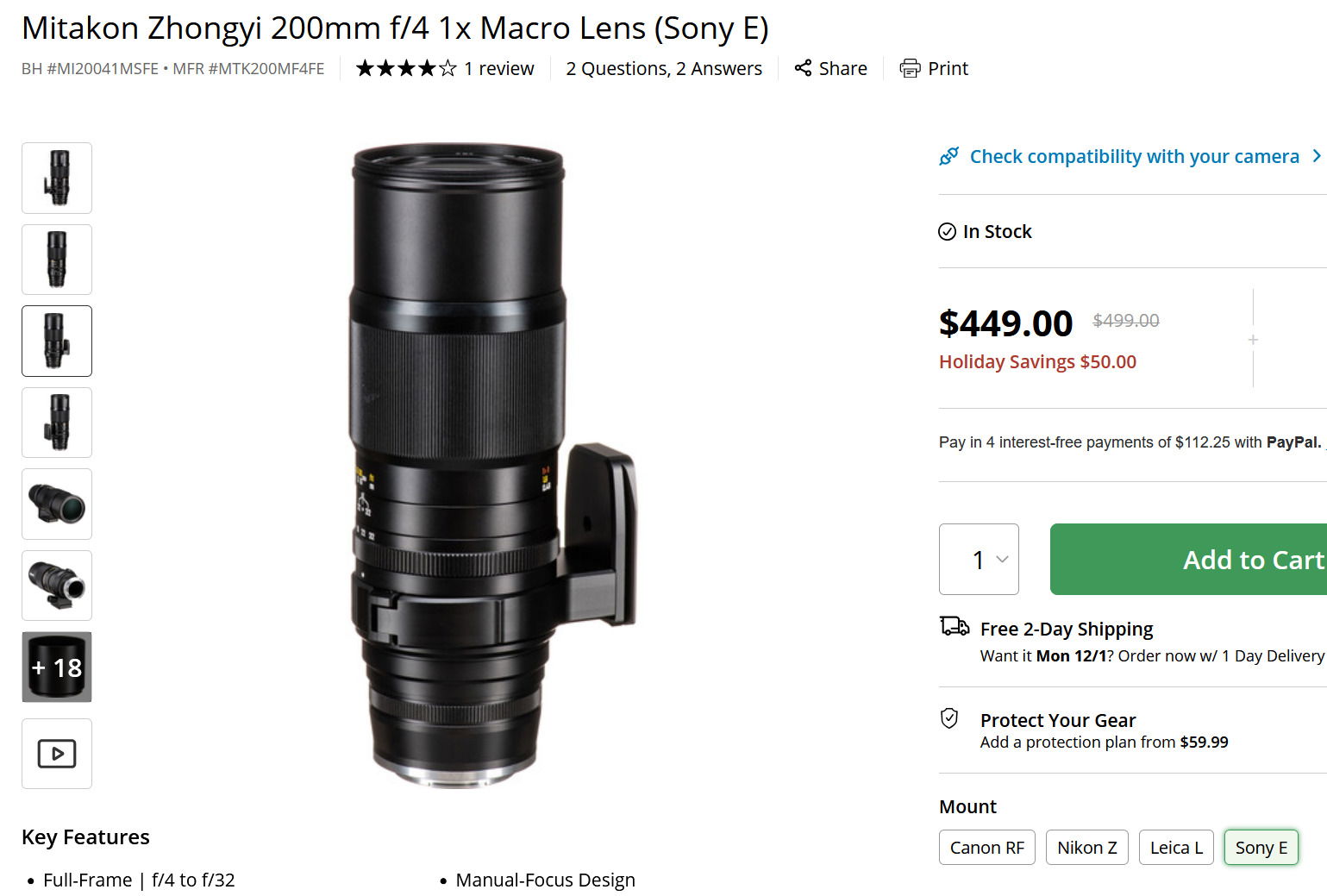 Thanks for this Dennis. Might be worth some checking. I can use the 200 on the A7rIII with an adapter but there are none of the nice E mount features like focus magnification and real DOF. I wonder if this lens would have any of those features.