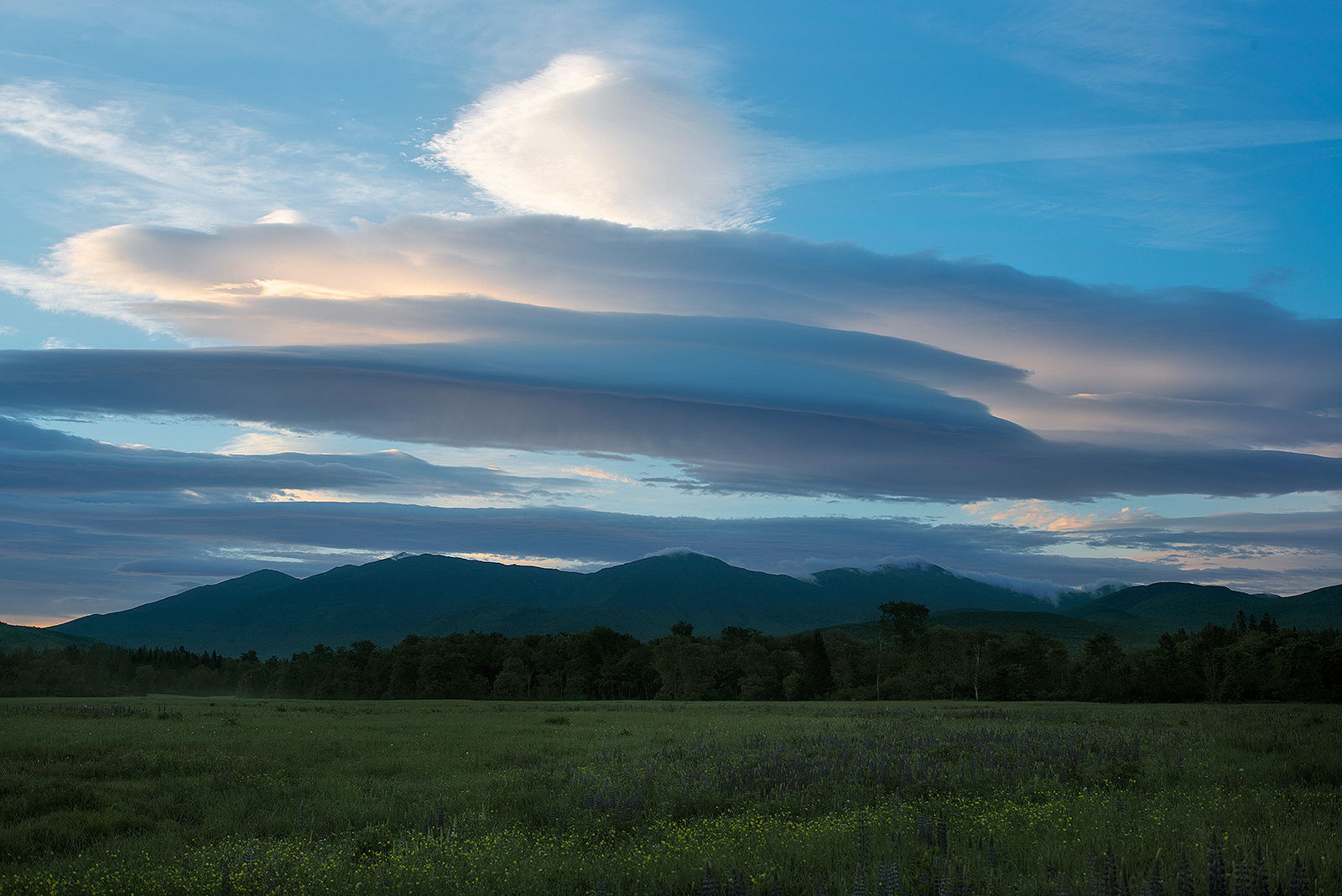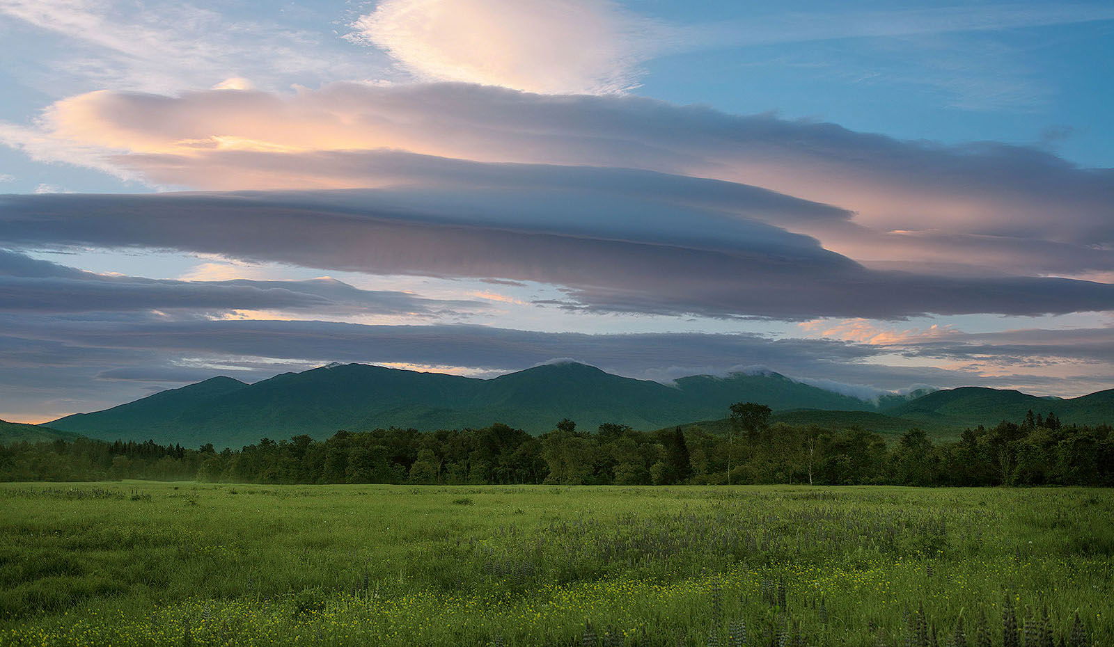 Mike, the thrill of the purple/pink clouds may have been gone at this point, but with lenticular clouds like this, the show continued for at least 45 minutes after sunrise. In terms of composition, I like that you included the row of buttercups near the bottom of the image. But I think you could go for more of a panoramic crop that slices some off the top, which to me places more emphasis on the lenticular clouds.