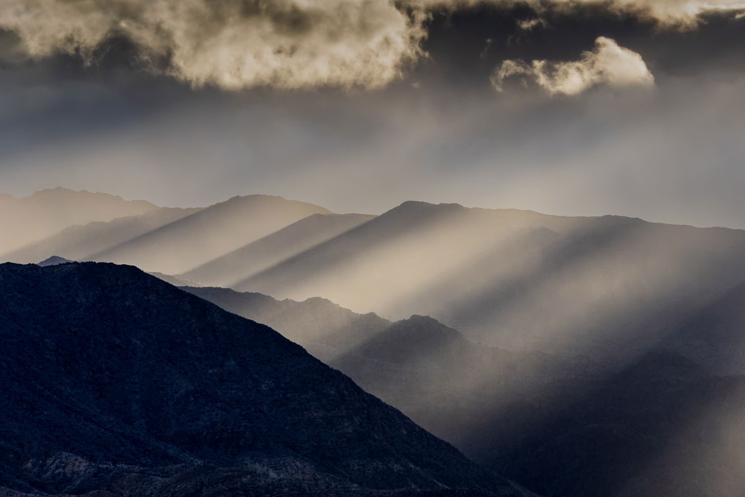 The rays are flat out gorgeous and I think the layering with the ridgelines adds some wonderful depth to this scene. I think you made the right call on excluding the sun in this image. Who needs the sun when you have rays like these! While I quite like this as is I could also see a B&W here; a twofer if you will. Not necessarily better, just another option. I hope you do not mind, but here is a rework with what I was thinking. Just my opinion of course. Beautifully done.