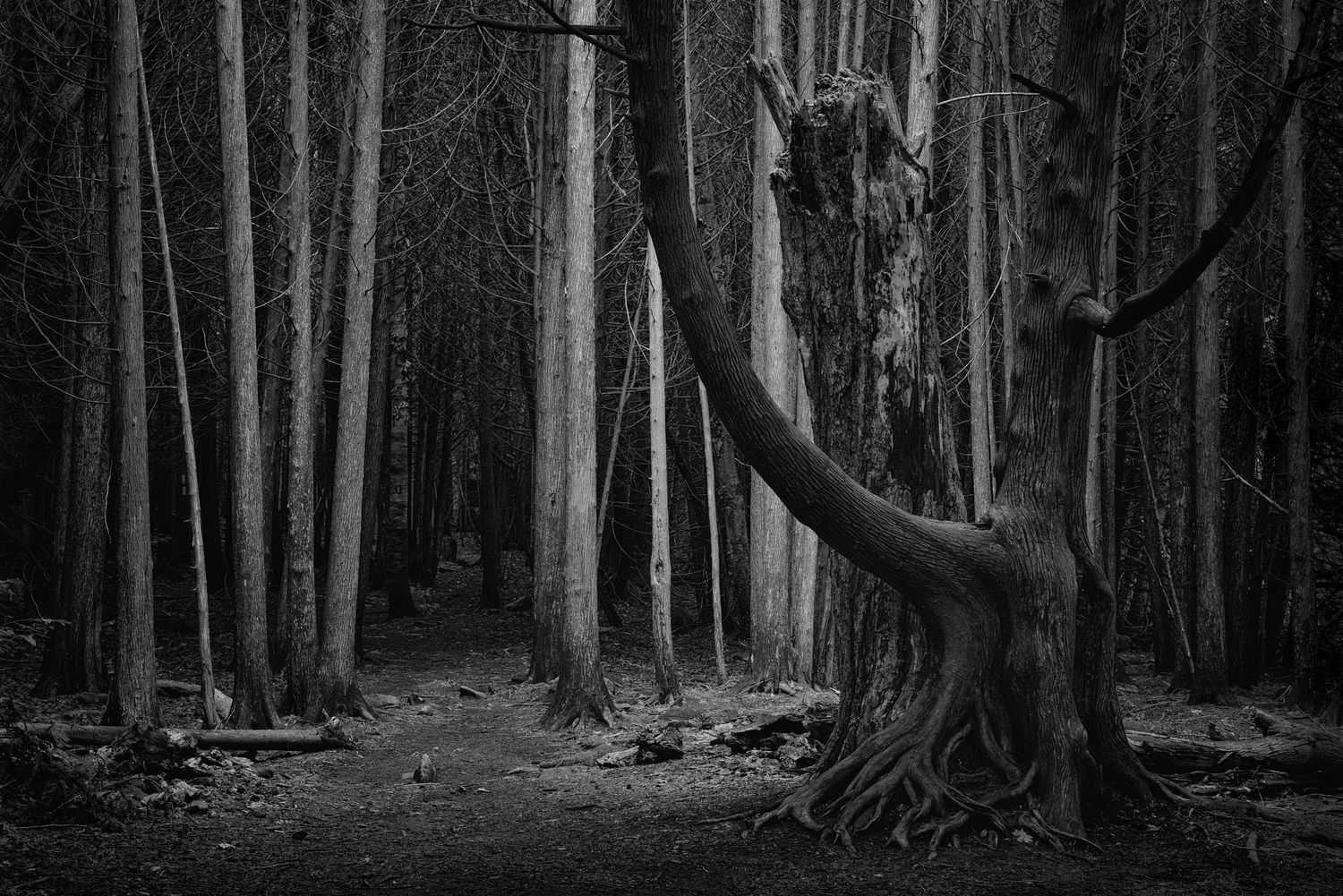 Amazing light for sure, Bryan! I can see why this would stop you in your tracks. This has a nice air of mystery to it and the conversion to B&W looks perfect. I particularly like the character of the FG tree on the right as it only adds to the mood IMO. Beautiful image.