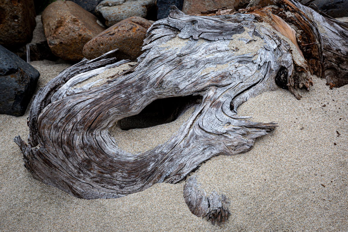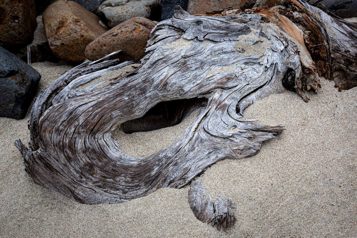 Thanks, everyone. I took another stab at it. I did some dodging of the cavity and burning of the highlights in the wood to the left of the cavity. I cleaned up the sand a bit more to get rid of the debris in the right mid-frame.