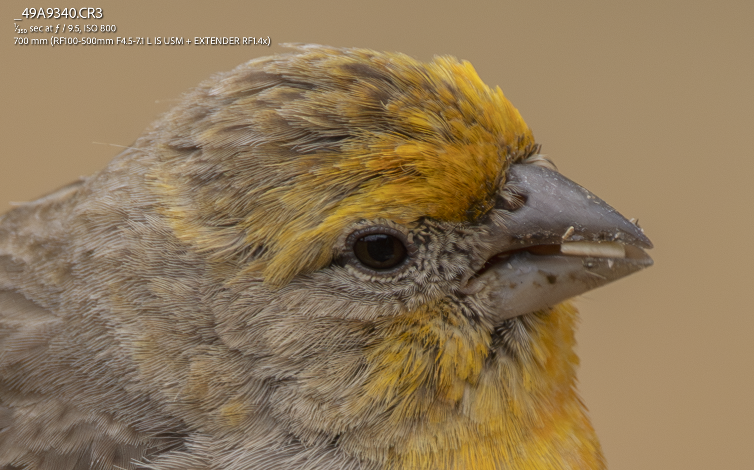 Here’s another shot from 10 days before that made me think it’s a juvie – just a screenshot of the 100% view in LR, with the LR Denoise run at default.