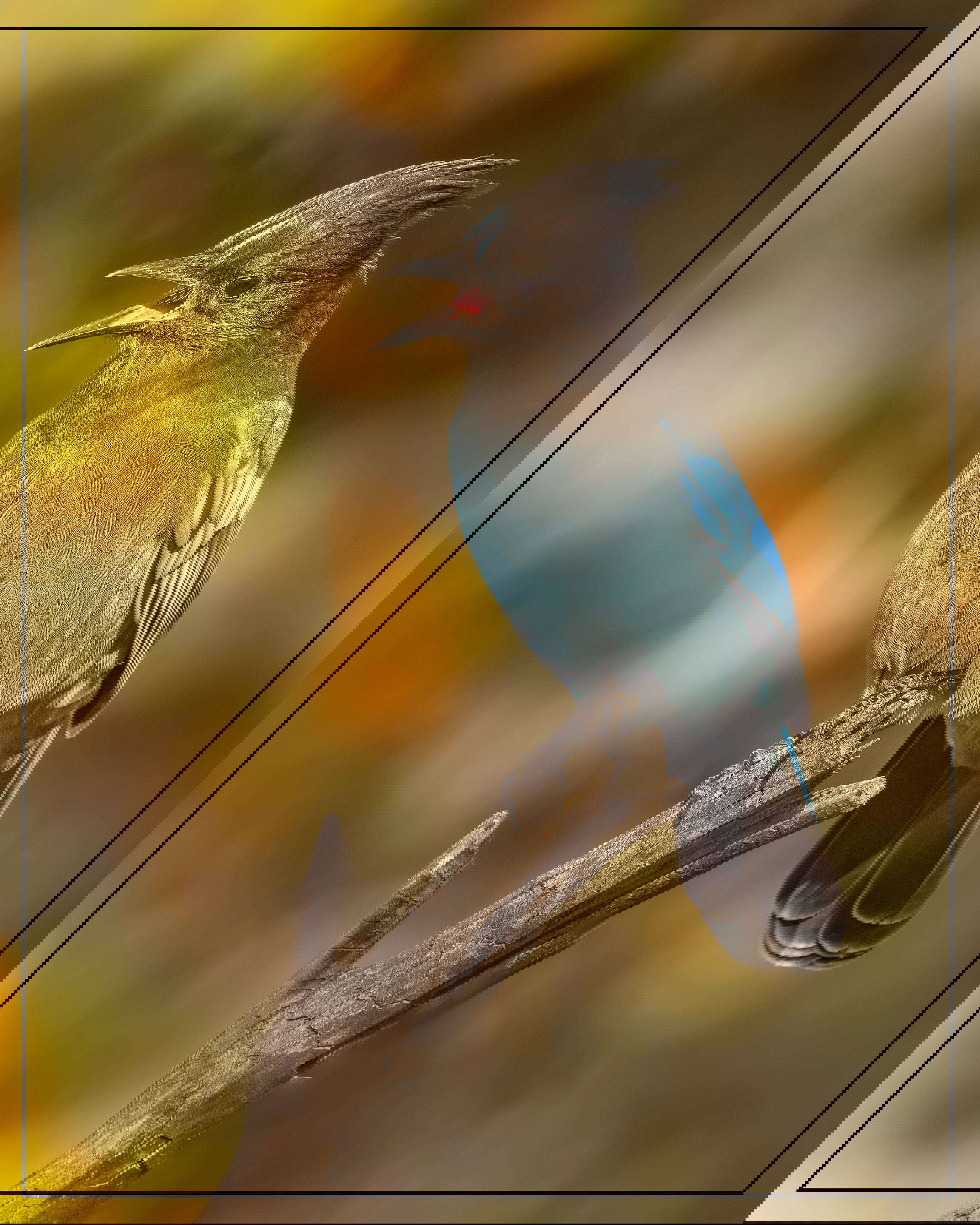 Another nice Steller’s image, Allen. I like the open beak as they always seem to be scolding something. The difference in lighting makes this a whole different image, though I suspect the eastern birds might be a little paler depending on how often they cross over the mountains to interbreed.