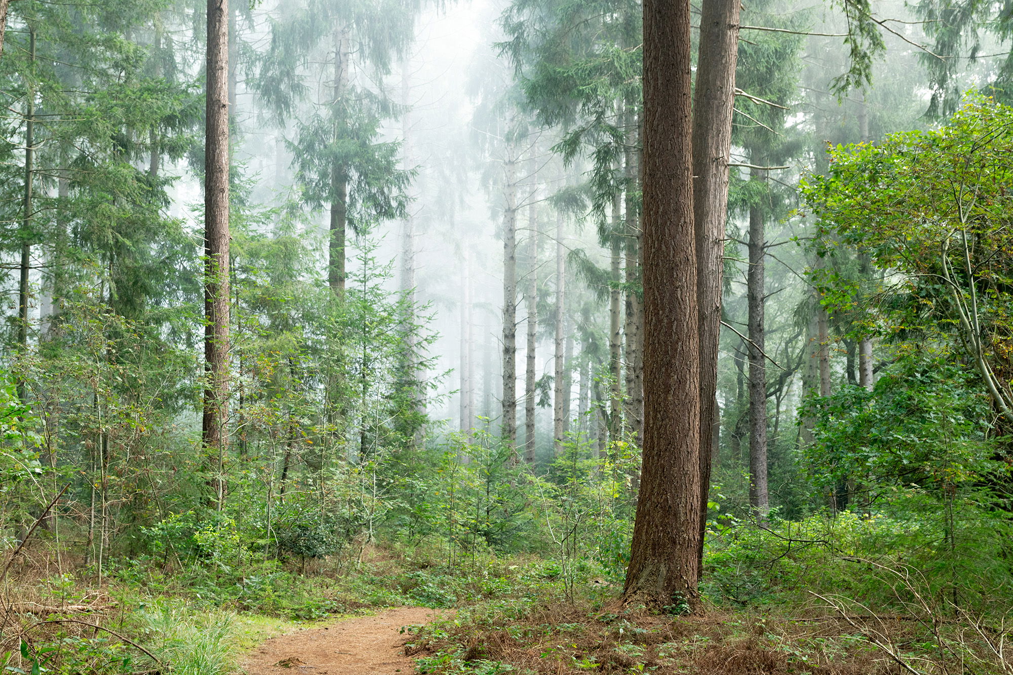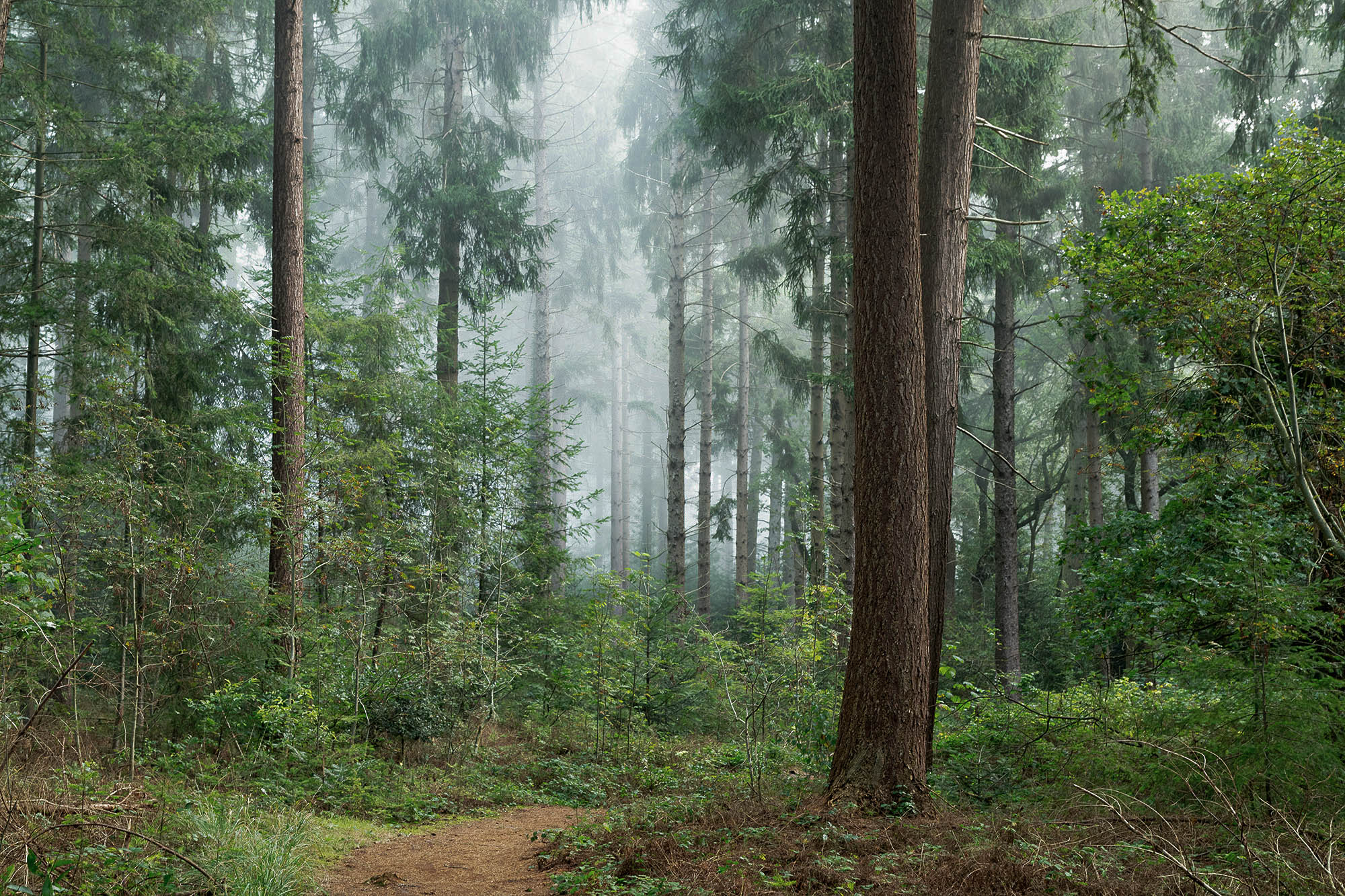 Hi Ben, I enjoy looking at your image. Lots t of promise. The composition is dead on. The leaning branches on the right side are a bit of a bother but detract very little. The vertical repeating trunk columns are very strong. I take your meaning that they can bring one into the image. It is the foot path that walks me into it. I think the image would be improved and stronger if the overall exposure decrease by a stop . I think it would create a darker forest look and set a more intimate mood. The fog mist is beautiful but with the current processing it dominates the forest and trees. The greens look a little too bright saturated to my eyes as well. Would love to see a rework of this one.