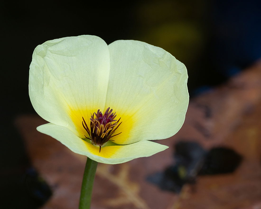 Interesting flower that I don’t think I’ve ever seen – Picture This says it is a Water Poppy, Hydrocleys nymphoides. I like both the versions but prefer the landscape a bit more, for the interesting balance of the maple leaf. But the portrait orientation shows the habitat more. I definitely would leave the lovely colors in the BG! And the telephoto lens that seems to be inherent in my brain loves @Dennis_Plank’s version. I could also see cropping about the bottom fourth off the vertical.