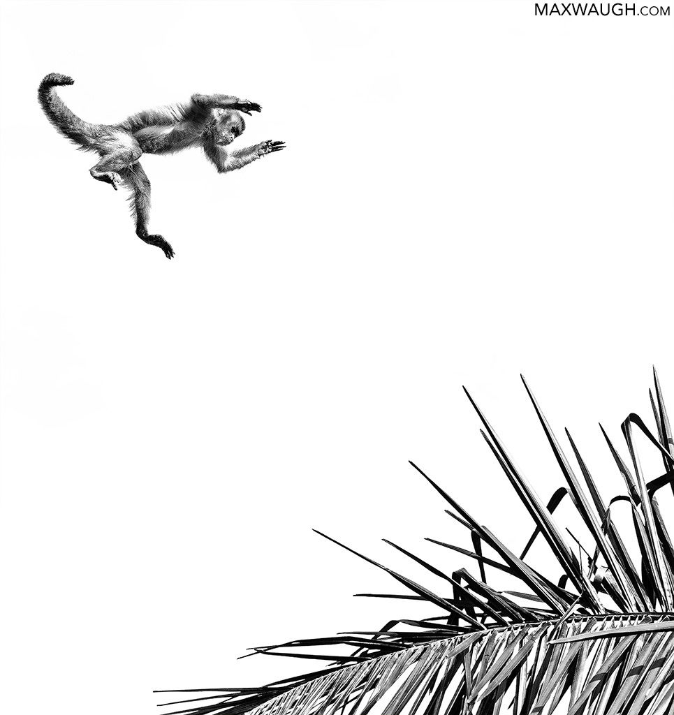 Flying monkeys are priceless. Although this one does not have any wings like those presented in the original Wizard of Oz movie (LOL). The high contrast of this image works very well with the high key BG. Lraving the palm in the frame provides context which is important for completing the story. Awesome shot…Jim