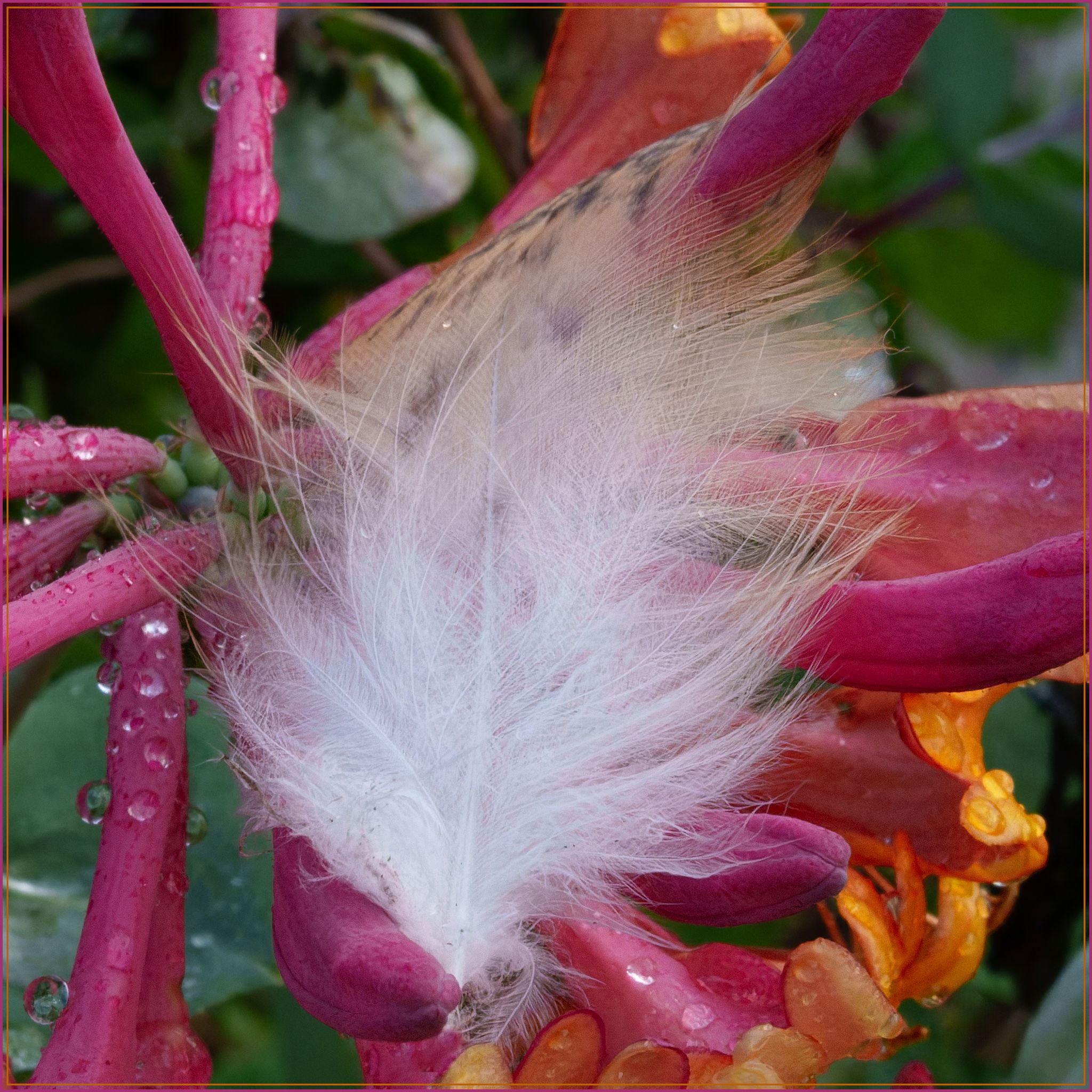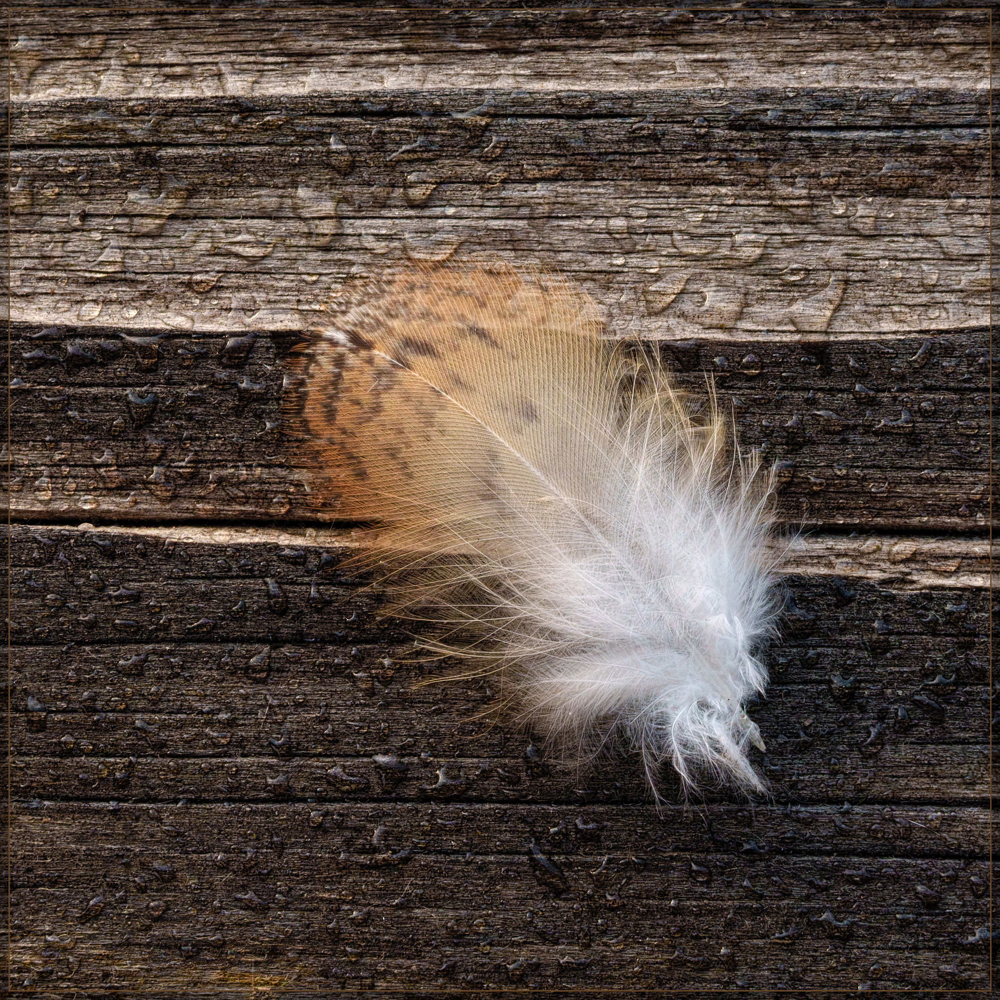I was out shifting the irrigation in my blind setup this morning and spotted this feather that I believe is a contour feather from a Barn Owl. I had to pick it up and have some fun with it. Rather than go with a macro lens, I chose a 28-70 mm zoom because our camera club member sharing theme this month is “The Normal Lens”, 50 mm for this camera. One or two of these are down in the 38 range because I screwed up. The feather is just slightly over 1"x2".