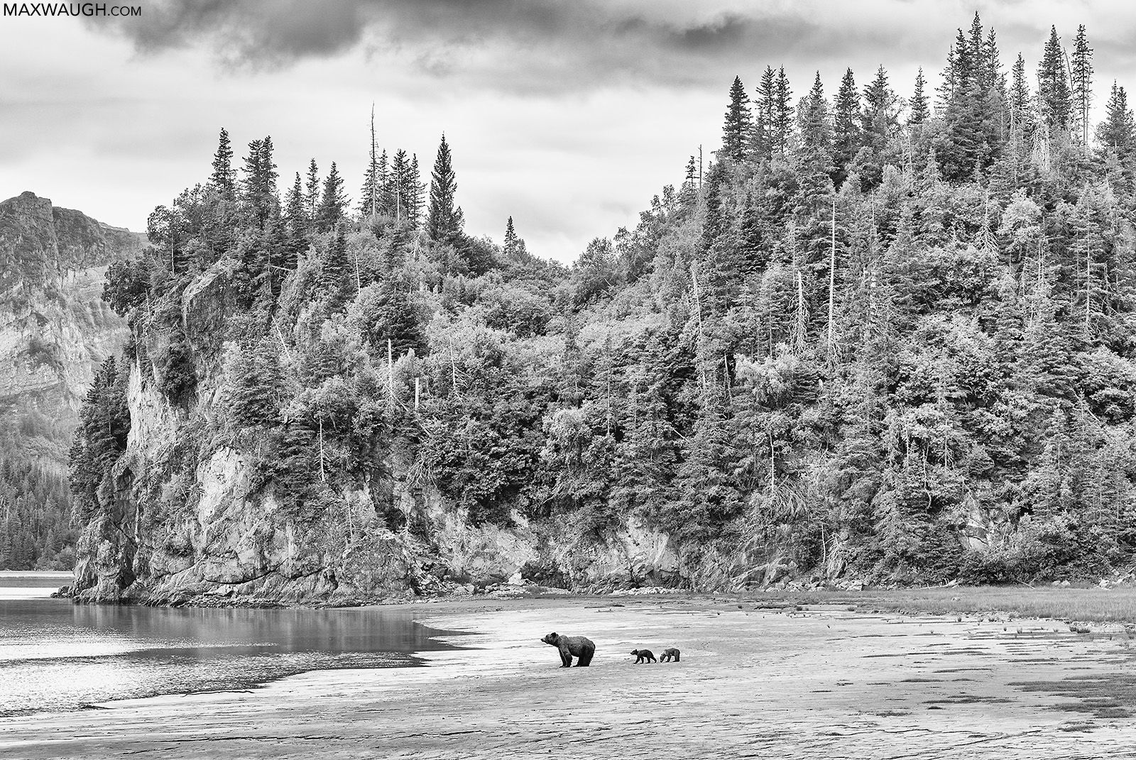 Max, this is a wonderful scene from this part of Alaska. The B&W gives the feel of a bit of winter although photographed in June. The trailing cubs are a real plus to the image. You did not mention what bear species this was. This brings back fond memories for me. My two years flying all over the entire state I encountered every type of bear except a Kodiak.