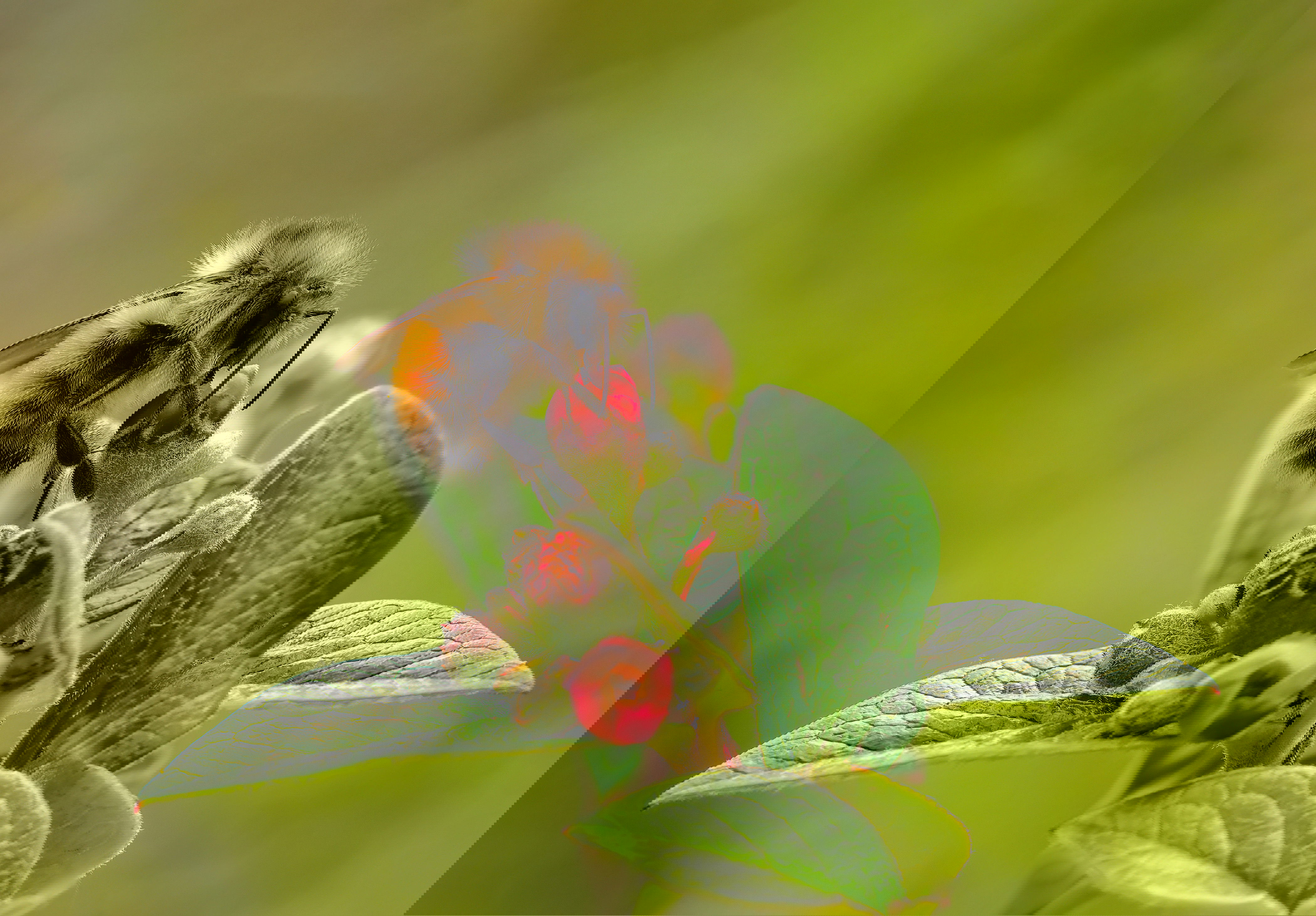 David, the details in the bee are outstanding. I suppose that if I looked long enough and with enough skepticism that I might eventually have noticed that the leaf on the right is a mirror of the one on the left, but that’s unlikely for anyone outside of a photo contest judge. If you had the shutter speed, a polarizer would suppress the glare. I’ve also attached a version where all I did was burn the brightest tones in your original version. Oh yeah, the leaves at the bottom can also be burned-in a bit to reduce their presence.