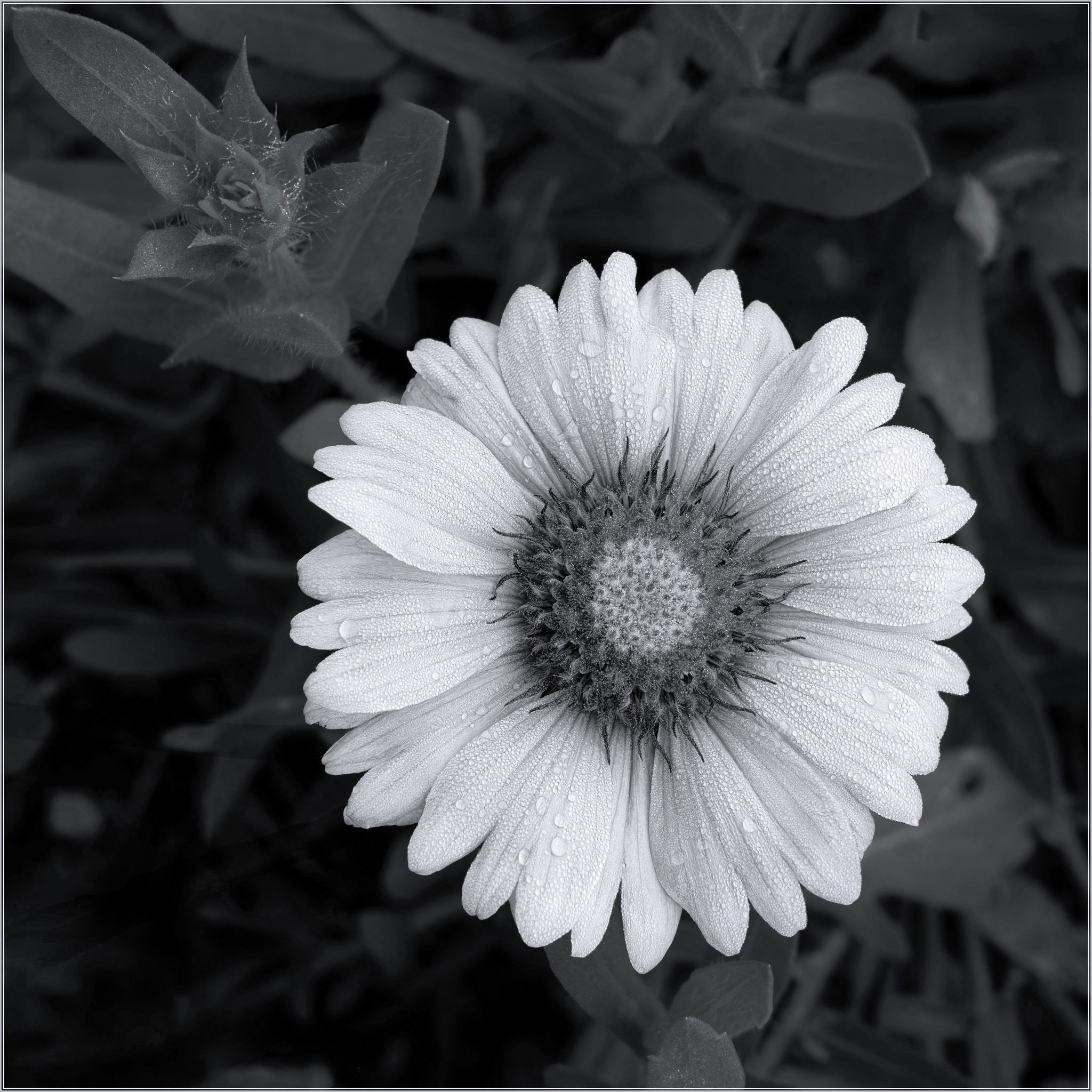 One of the details I love here is the dew on the flower, and it shows up really well in a black and white: