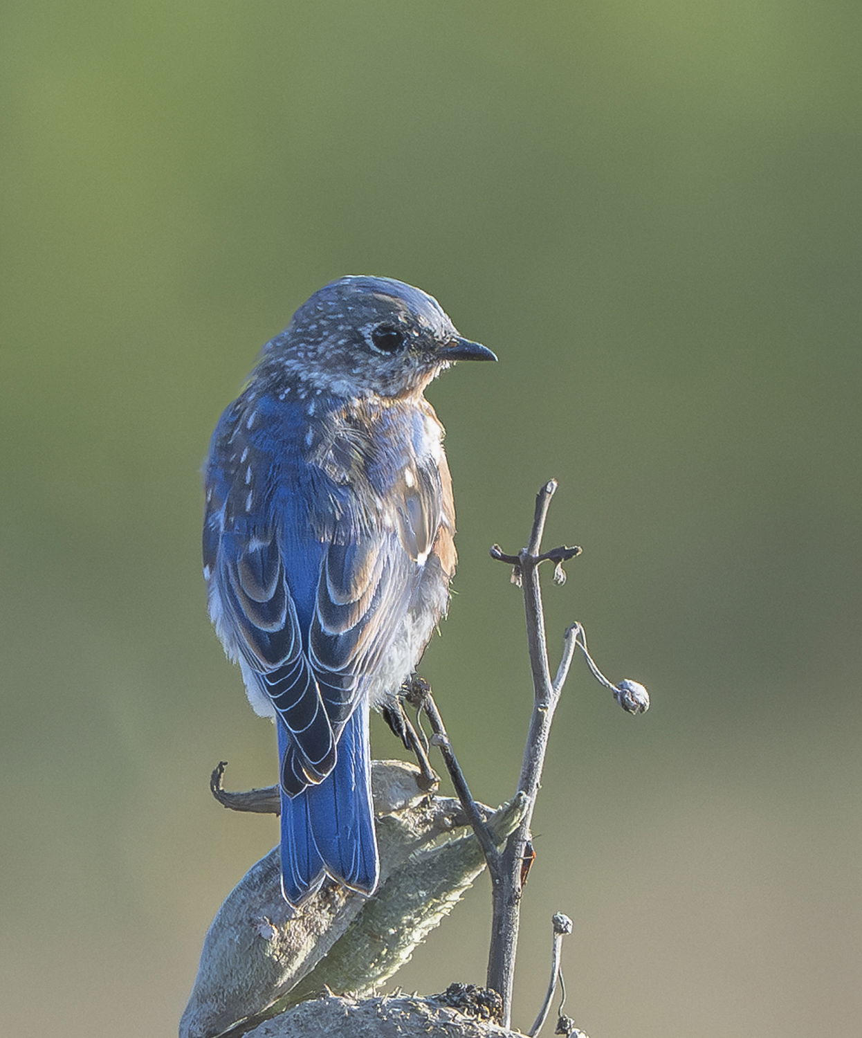 Nice bluebird. I like the crop. If you moved it at all, maybe towards the upper left third and get more of the bottom seed pods? But it’s great as is too.