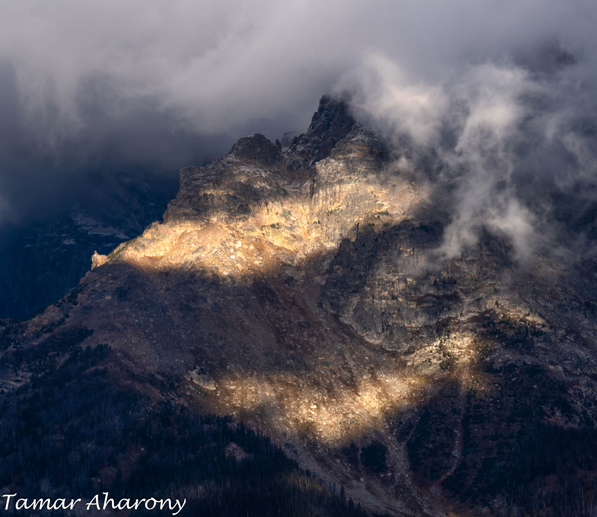 Tamar, you’ve done a good job of catching the drama of the lighting in this scene. The two streaks of light and the swirl of clouds above are quite striking. I agree that some subtle dodging of the shadows can let them play a larger role in the viewing without changing significantly the drama. If there’s a focus issue, it cannot be fixed in post processing. While adding micro contrast (clarity) can give the appearance of a sharper image in a small version, any lack of sharpness will always show in a larger view.)