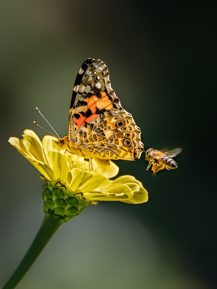 Michael, I agree that the motion blur of the bee works nicely in this situation. You were fortunate to get the group in one frame. If you use Photoshop CC you could easily add some canvas with a content aware crop if you want. I have that same lens but don’t seem to use it much. I’ll be interested to see more of your work.