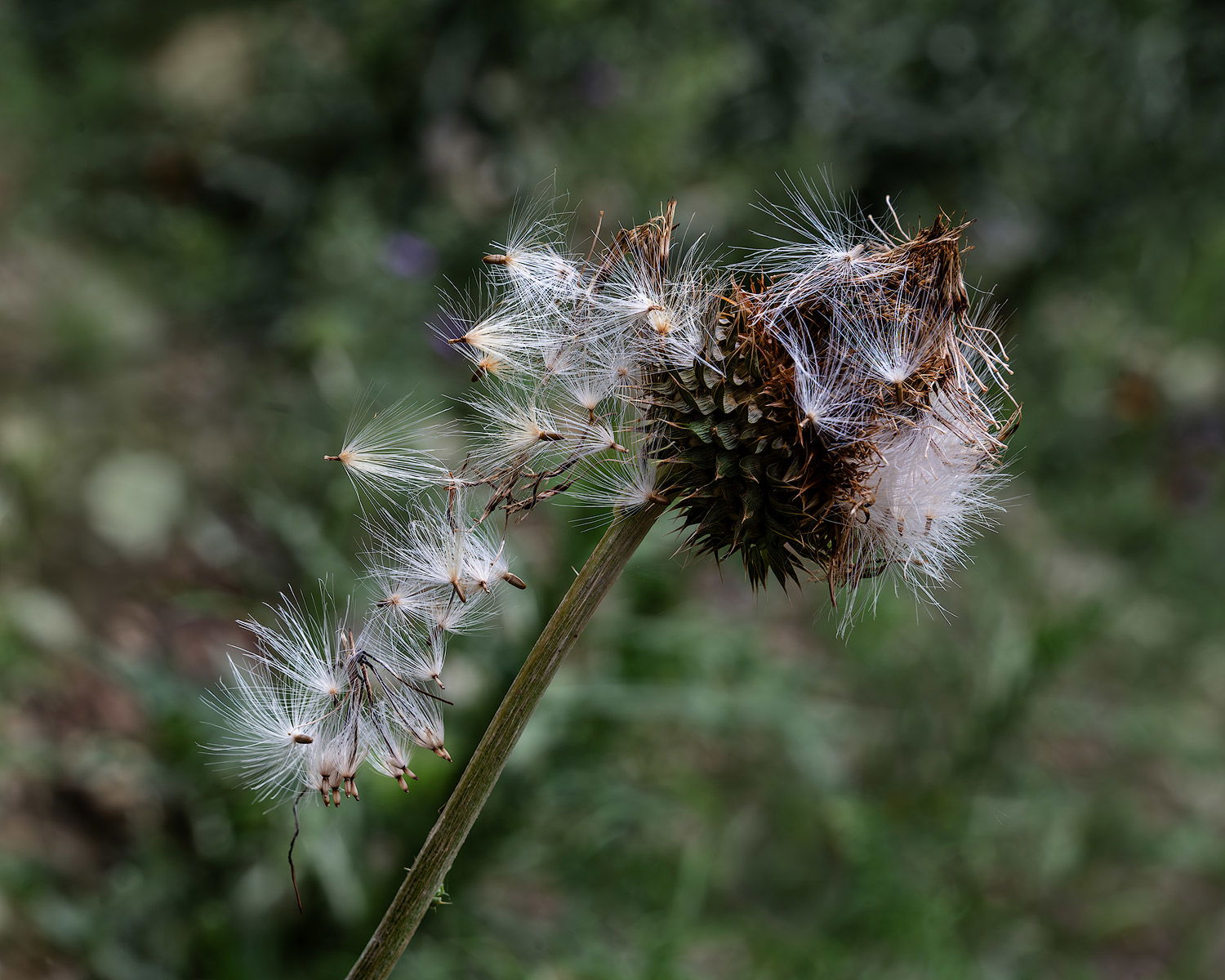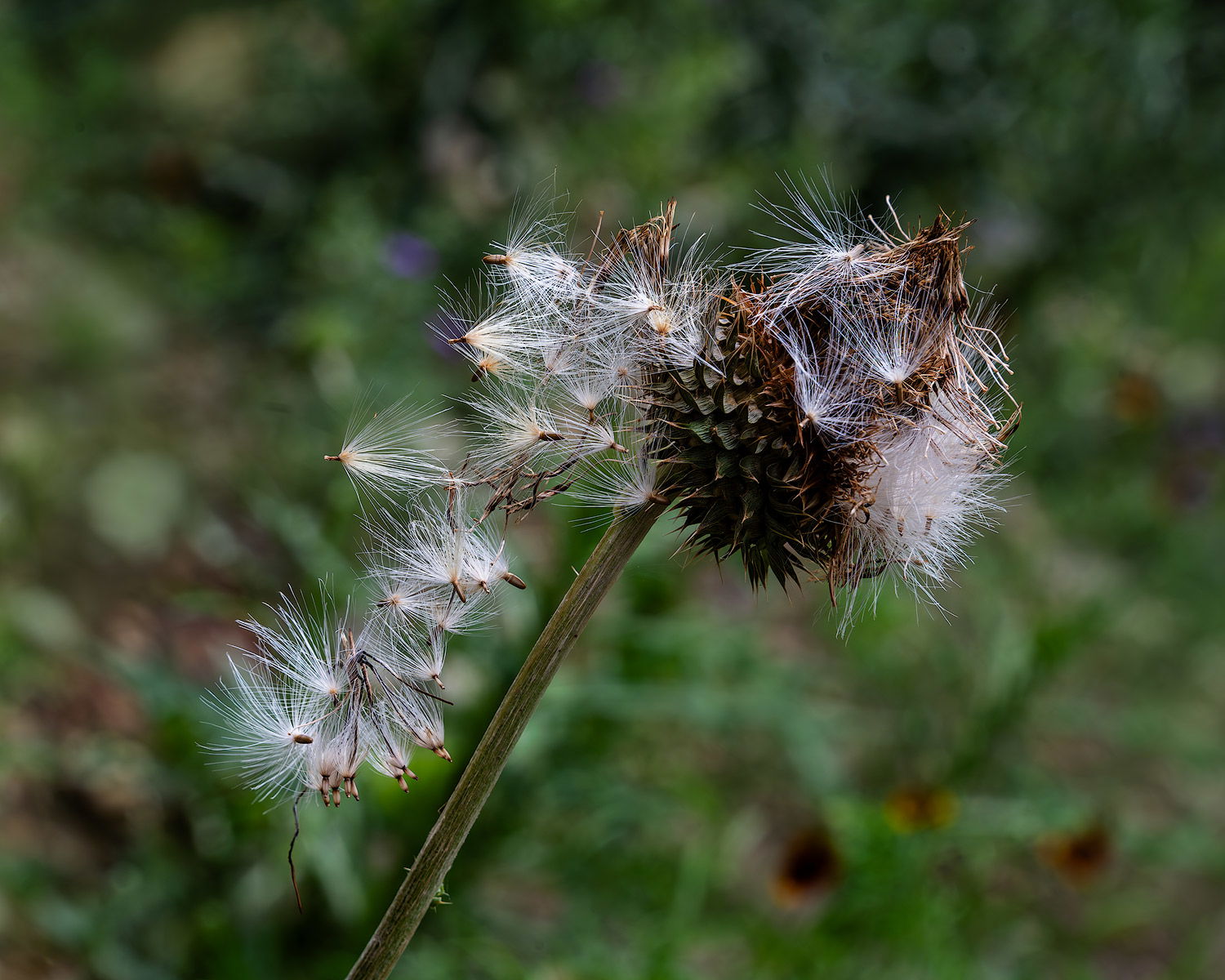 I really like the story this image tells Linda. The old thistle is breaking down and giving life as the new seeds are just beginning. I can see cloning out some of the darker spots to reduce the impact of the BG a bit.