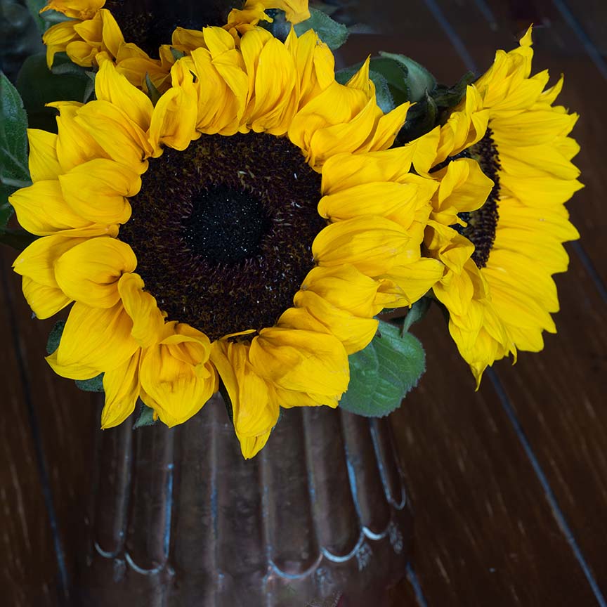 We found these beautiful, bright sunflowers at our local farmers market (California!) They were fun to photograph. Here is one of my shots.