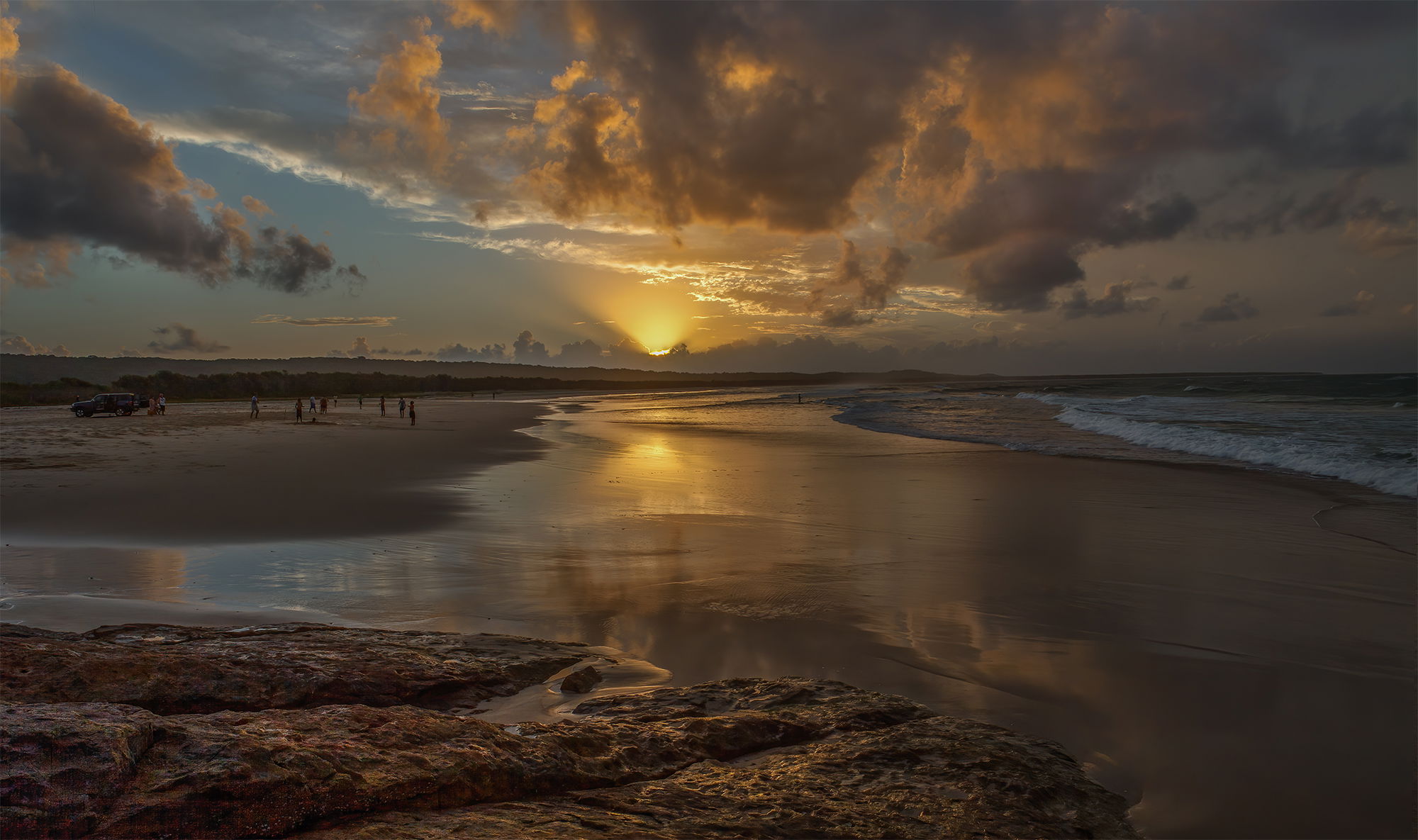 Glennie: What an absolutely glorious scene! Makes me want to be there. I like the inclusion of the people but wonder how they could pay any attention to their game with a sunrise (?) like this. Marvelous reminder that in your part of the world Christmas is in high summer. >=))>
