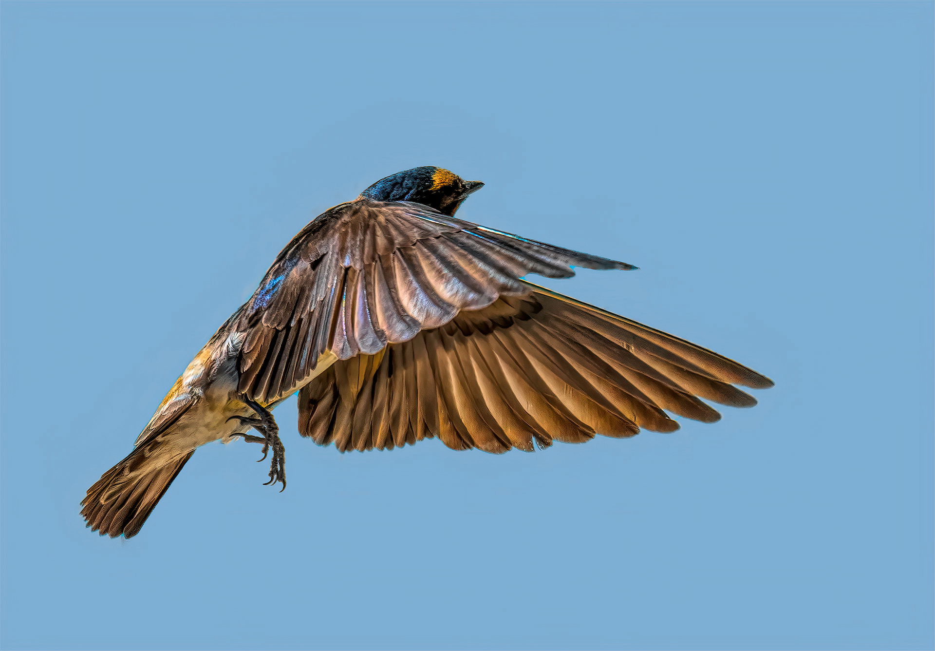 Very nice image, and I know very well that swallows are difficult subjects to freeze in flight (many wasted photos on my side - good that it is not film any moreā¦). This one is masterly depicted. I agree that the āoriginalā blue of the sky was a bit too strongā¦
