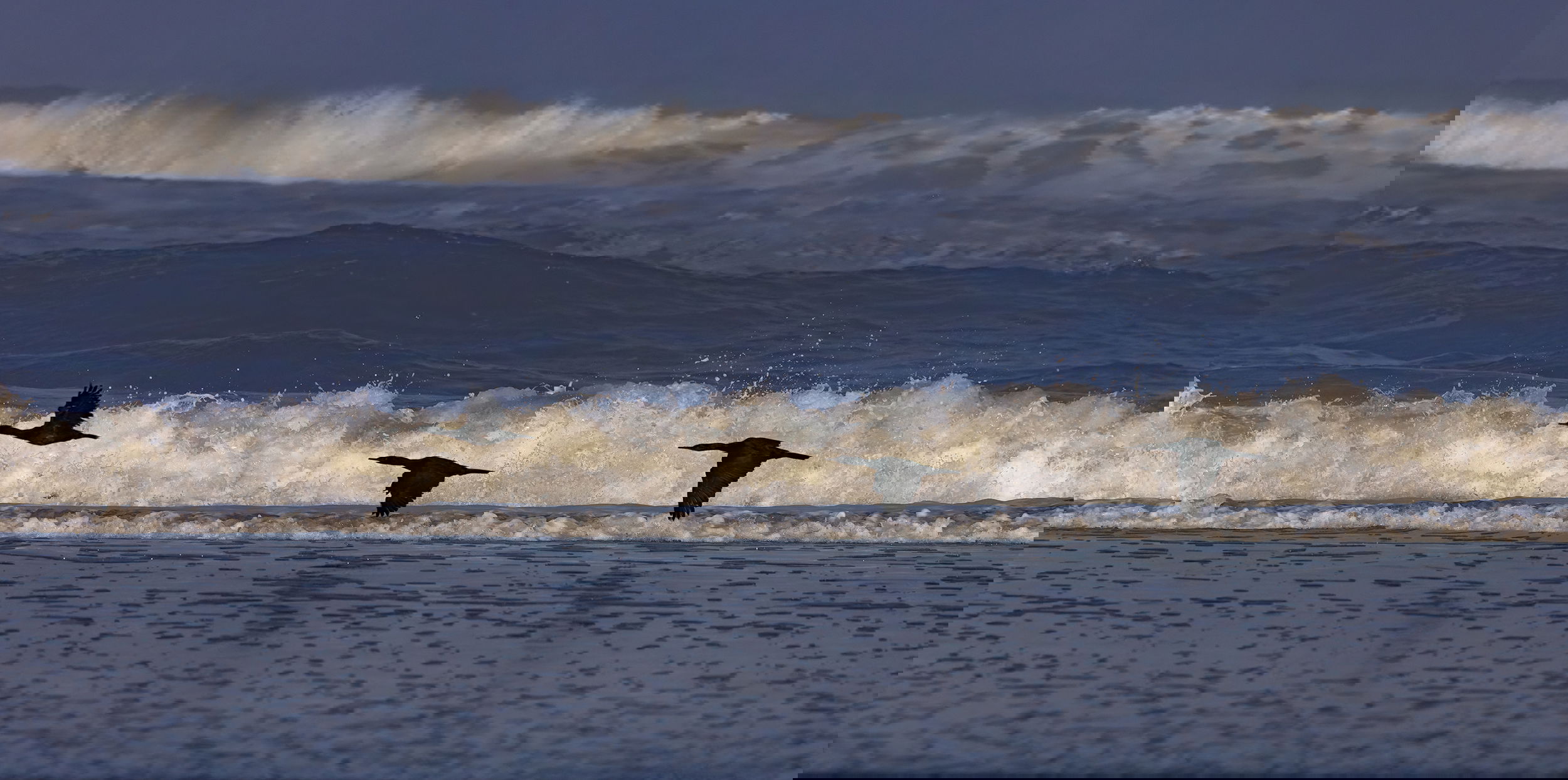 I’ve taken a lot of cormorants in flight and have rarely been pleased with the results as the birds are usually in the sky without any background or just flying by some uninteresting rocks. This was a rare occasion where I saw them low to the ground against the waves. Not much detail in the birds, but I like the overall scene.