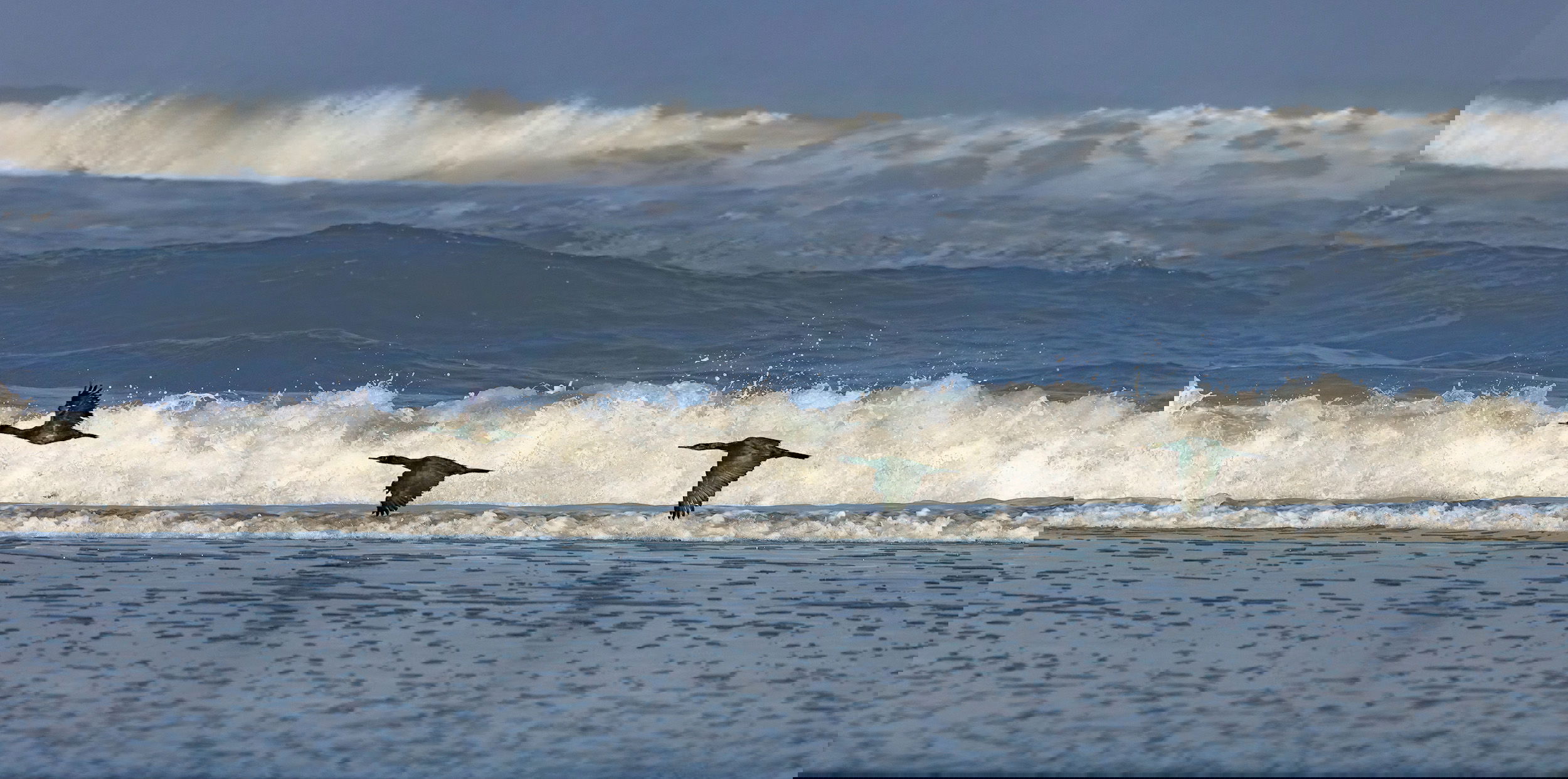 That’s a really nice catch of the birds with a great background, that was a beautiful surf to catch them against. The pano format does a nice job here.