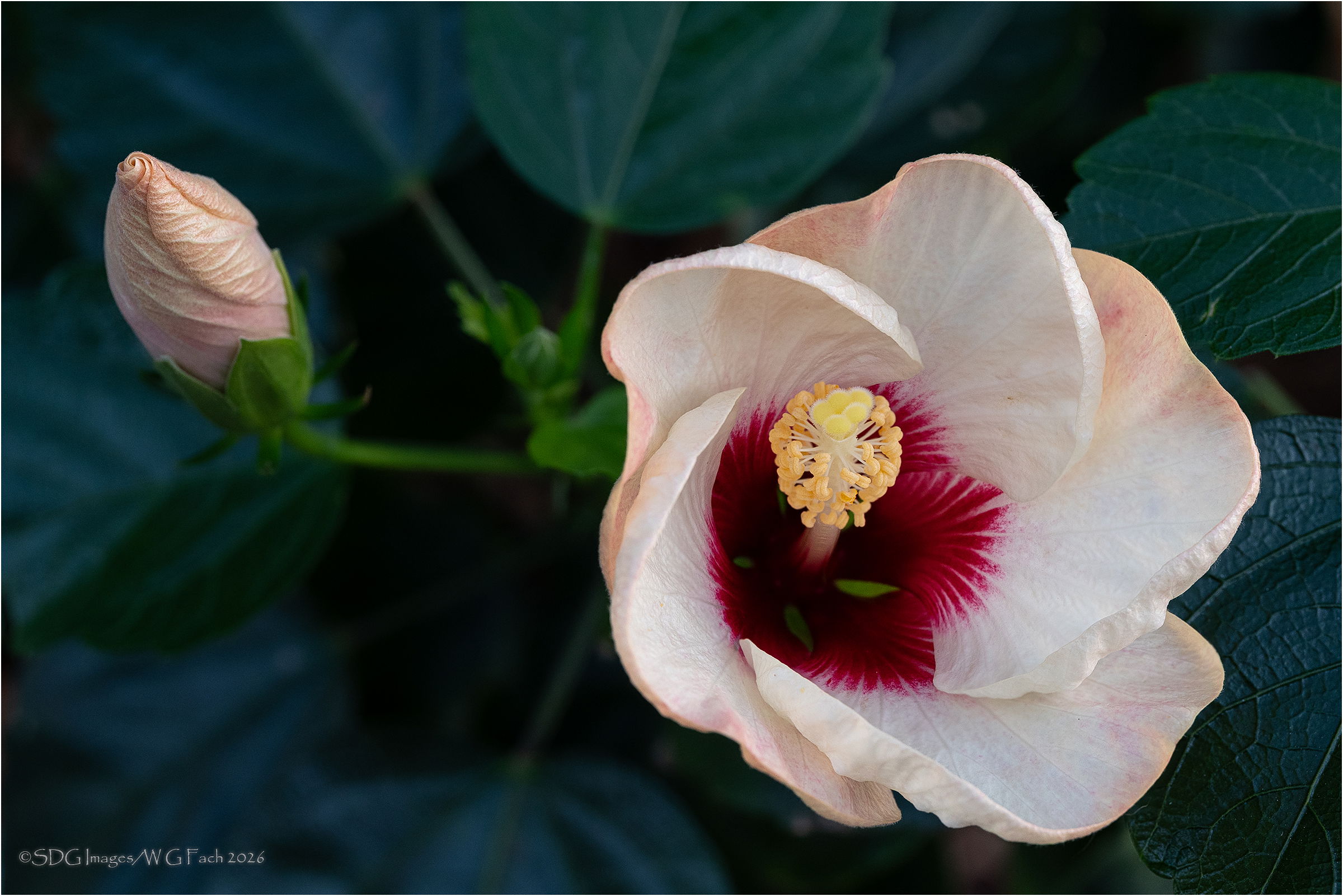 Good job on blending the two images, Bill. Beautiful job in capturing the open flower and the bud gives a sense of anticipation. I like the composition as well and the background leaves frame the flowers and let them pop.