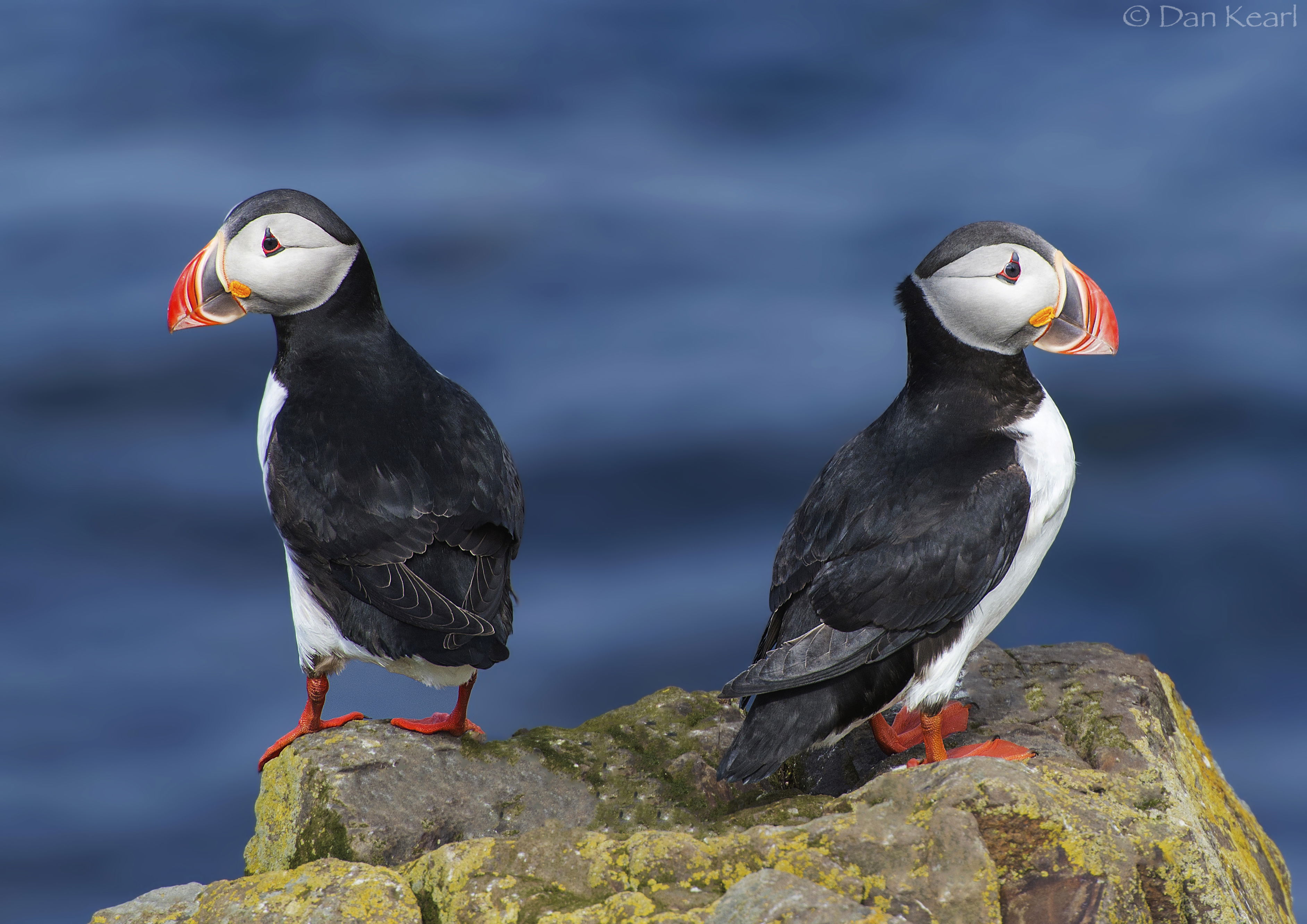 Oh wow, Dan, two Puffins at the same time, and with a 200mm lens! I like that they are standing with their backs towards you, and their heads turned to the side, showing off their beautiful faces. Nice rock for their perch, and the blue water makes for a nice background. When I bring the image up large, I am seeing chromatic aberration (green and purple) near where the white and black meet on the birds, (mainly on the bird to the left). Simple fix, for sure. Excellent image.