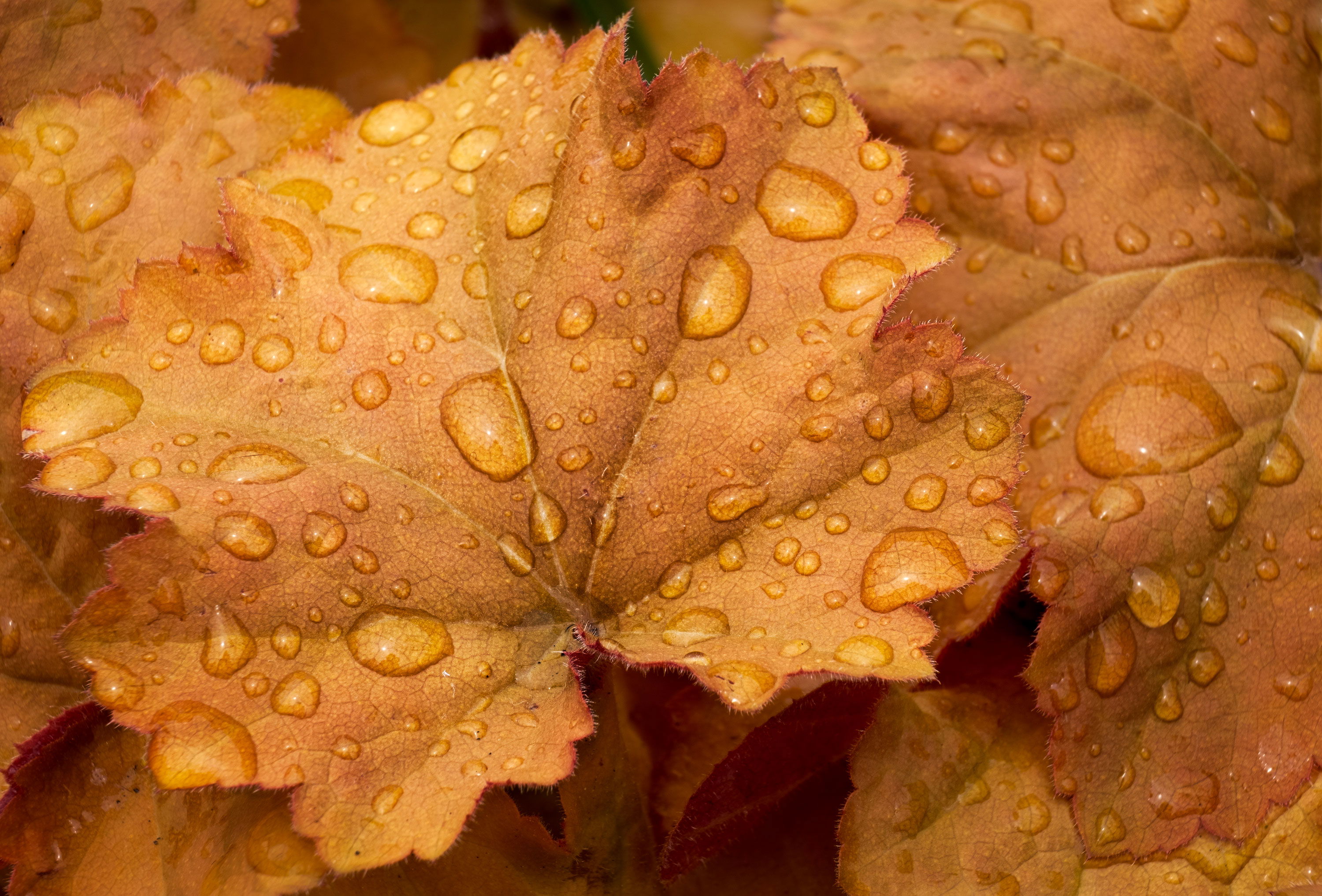 Kerry, this is a fine macro look at these wet leaves, with good dof on the main subject, nice colors and lots of details. A tiny bit more room at the top would be nice, but framing in macro/close-up work is always a challenge. You don’t say what focal length your lens was set at. That makes a difference because when working with extension tubes, the simplest way to think about how much more magnification the tube(s) provide is to look at the ratio of the extension length to the focal length of the lens. For example with a 100mm lens, 16 mm of extension would increase your magnification by 16% assuming that you had the lens set to focus at infinity. It gets more complicated when your lens is not focused at infinity since the extension tubes allow you to focus much closer than the normal lens does. The one caveat is that you don’t want the extension tube length to be more than about 1/2 of the focal length setting chosen on the lens. (The optical design of the lens starts to degrade at higher magnifications resulting in softness throughout the frame.)