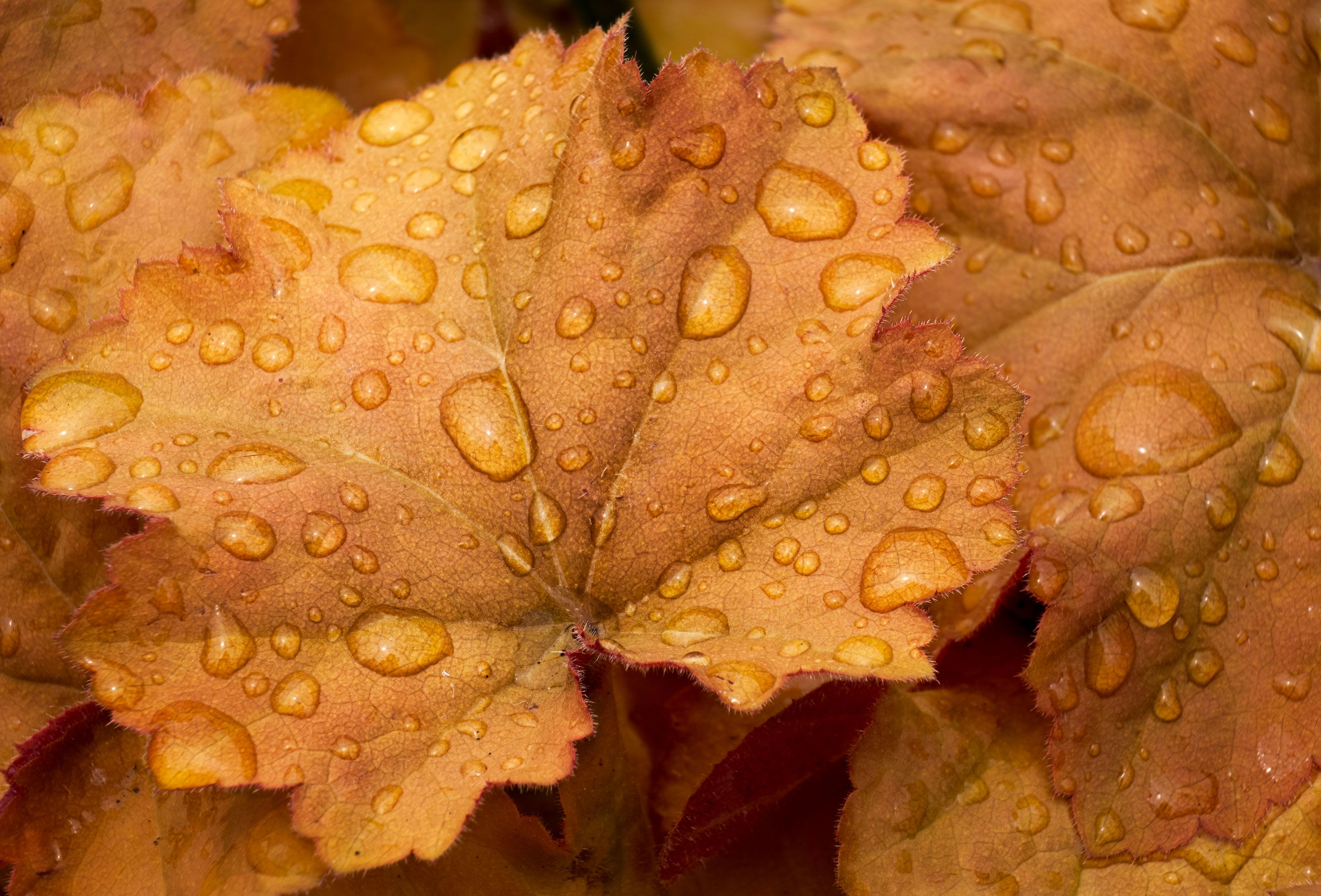 Hi Kerry - This turned out very nicely! The water drops add a lot of interest and I like the color of the leaves. It makes me look forward to wet autumn days later this year. Overall, I think the composition works well. The only thing that catches my eye is the spec of green at the top. In this case, I think it distracts a bit from the rest of the scene because it is so different. You could consider cloning out the green specs or cropping a bit off the top of the frame. Otherwise, a great start to your journey with macro photography.