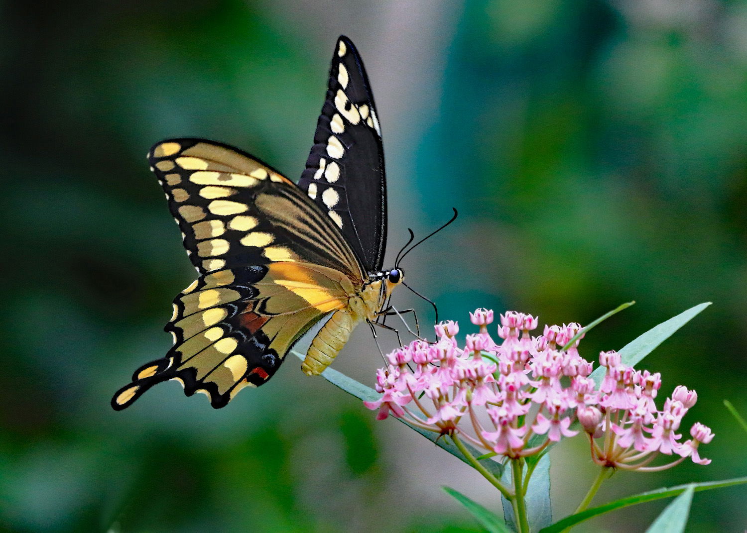 Terry, this is a great look at both the Swamp Milkweed and the Giant Swallowtail. The colors show very well, as they remain subtle and true to life. The variety of colors in the background add even more.