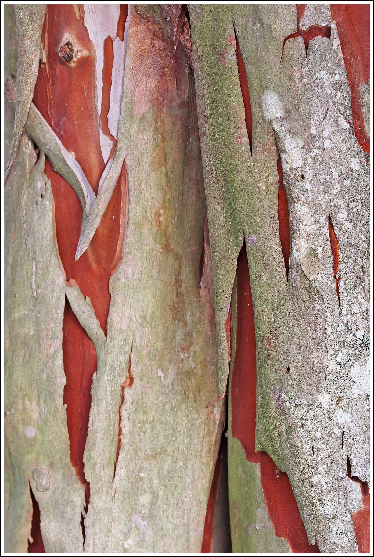Very nice, Bill. We don’t have many of them around here, but our native Madrone’s do similar things, without the fancy color. This is really cool. A fascinating abstract.