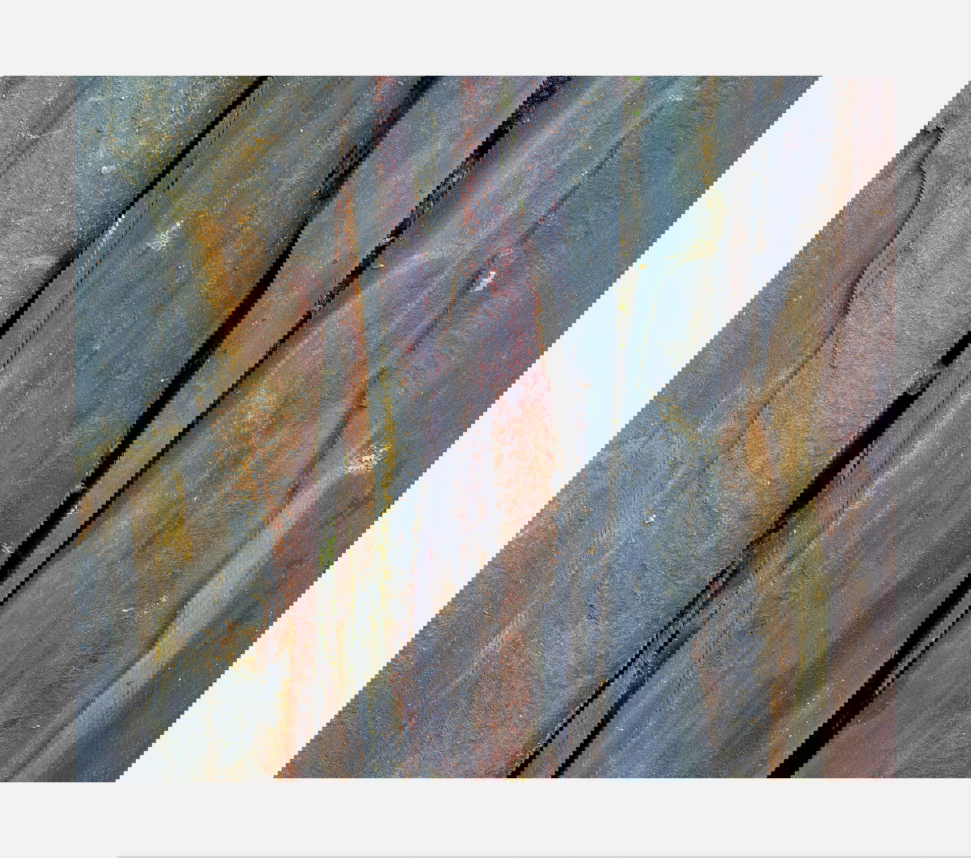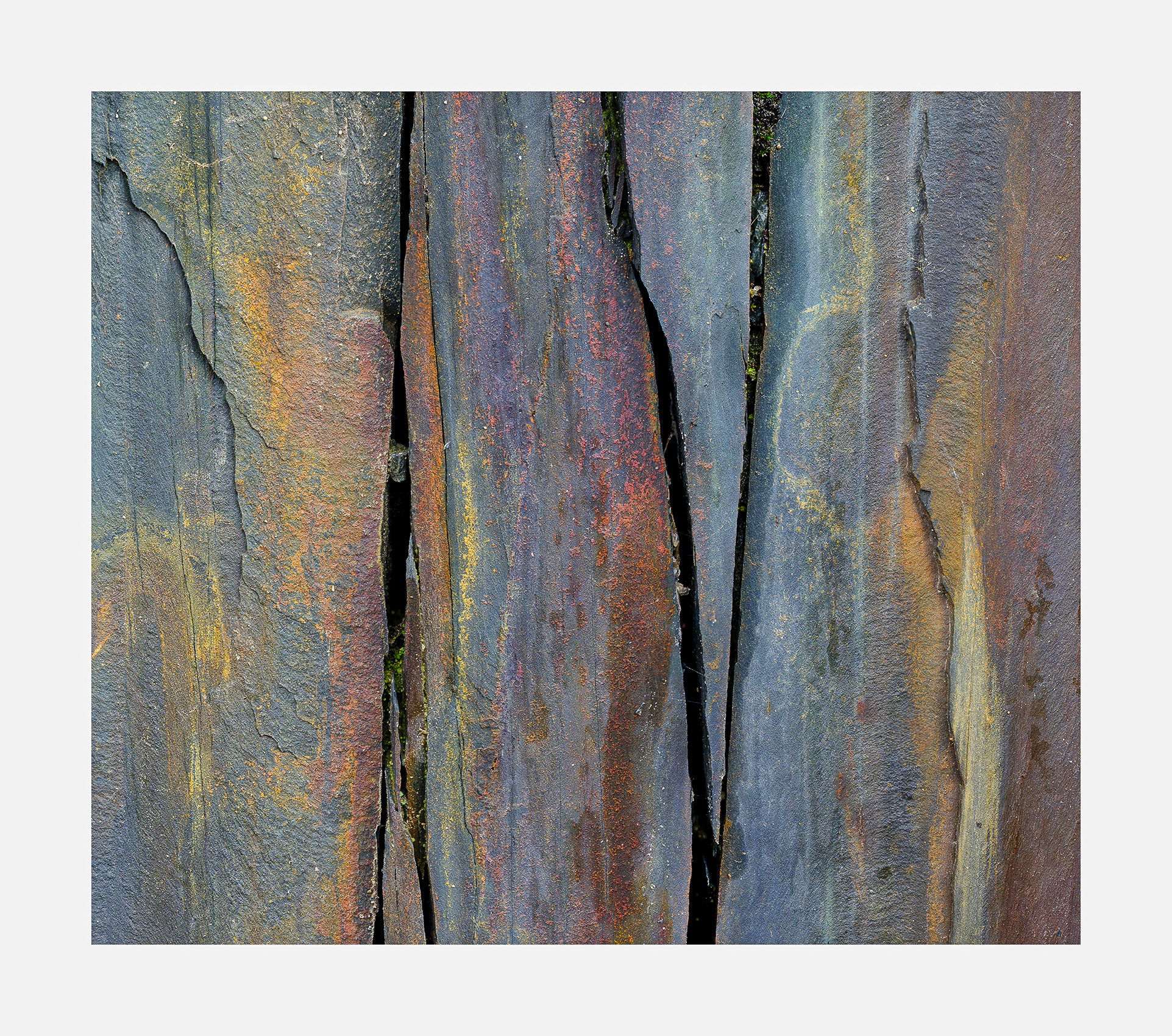 This is very nice and I like this a lot - it almost looks like a spectrograph in rock. The colours look very natural and yet they have strength and presence to them. The black cracks in the rock add another fantastic element and interest to the image.