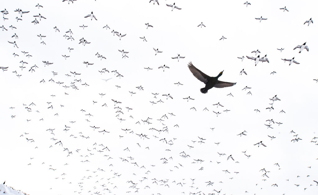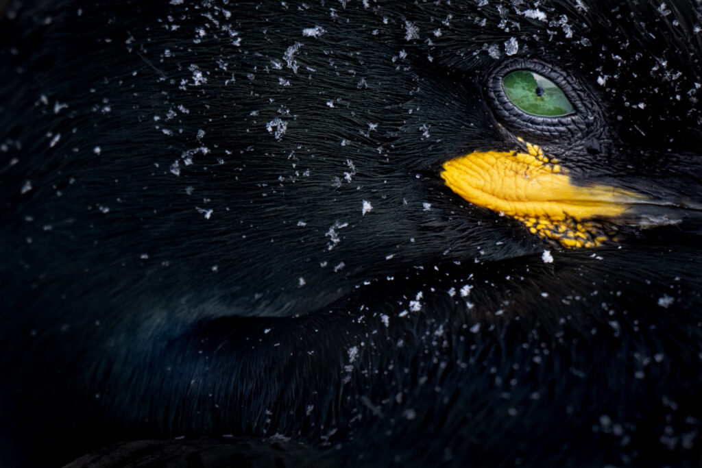 Extreme focal lengths can be effective in a single image, but they become particularly powerful when both ends of the spectrum are used to tell a story through a portfolio of images. On the seabird island of Hornøya in Norway, a population of European shags breeds. Located above the Arctic Circle, the island is still covered in snow as the birds return for the breeding season. The conditions are harsh, and the light is beautiful, as the shags establish territories, display, and battle the snowstorms. Using focal lengths ranging from 24 to 1200 mm, I worked to paint a picture of their story, covering both environmental shots, detailed close-ups, and creative perspectives.