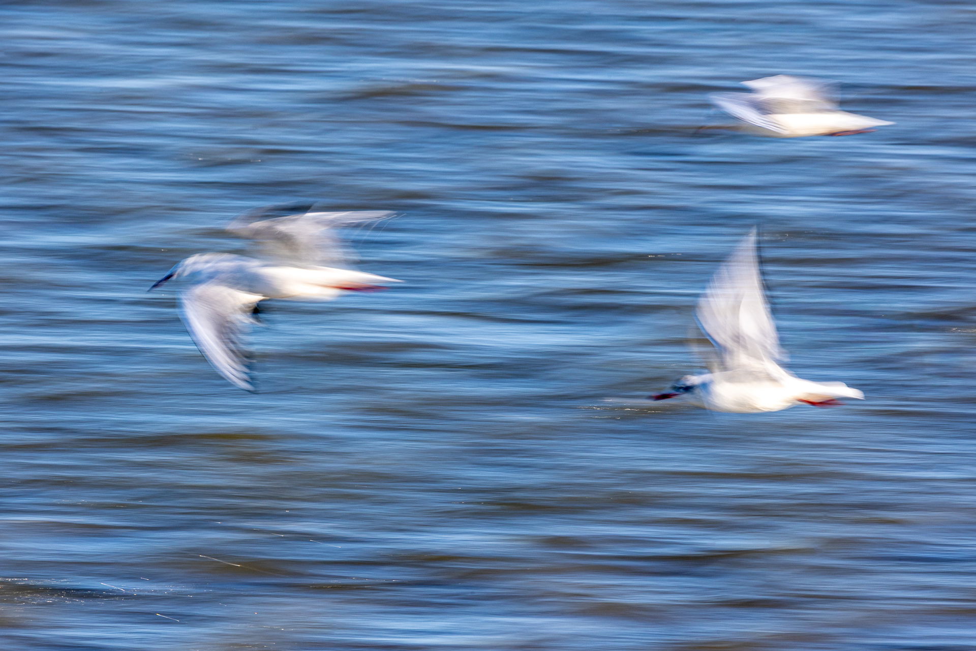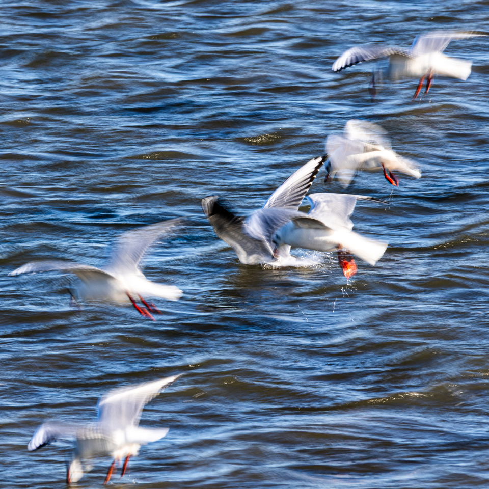 Interesting motion blurs, Xavier. My favorite is the last in the series. The first two feel more contrasty than I feel works with motion blur creating a disconnect between the soft feeling created by the blur and the hard feeling created by the contrast, which may be what you intended. The four birds on a diagonal in the B&W work really well for me, but the two in the rear don’t feel like they help the scene-just my taste. I also think a touch more room on the top and left would be nice in that image.