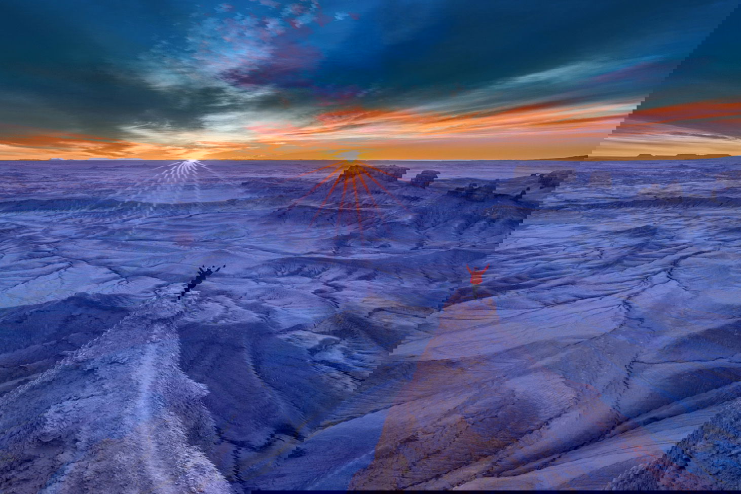Image 2: I’ve tried walking out to that tiny spire but my legs got wobbly and things started to spin for me so I turned around and came back. I’m much more comfortable on the little mushroom stands all along the edge of those walls but not that one spire. I find the composition a little bit heavy on the right side but I do like that the clouds around the sun are fanning away equally on both sides which makes centering the sun in the image a good choice. There is just more interest on the right half of the image than the left side. Perhaps next time, you could move to your right and have the spire on the left portion of your image and those buttes on the right with the sun-star in the center. There are some beautiful rock formations just to the right of that spire along that wall that you could include in your foreground. I like that you chose to do a sun-star for this image and I think it works well and isn’t necessarily the star of the image and is quite beautiful and subtle (no pun intended). The colors are a little bit bold for my tastes but again, processing is entirely up to the photographer so this is just my thoughts since you asked. The blue is maybe a little too intense for me although I find the color of the trail leading to the spire is just about right. There is a green color in the sky that I have never seen before although the rest of the colors in the sky look pretty natural to me so I’m not sure what that is. Lastly, the horizon is tilted and the image needs a clockwise rotation to level the horizon.