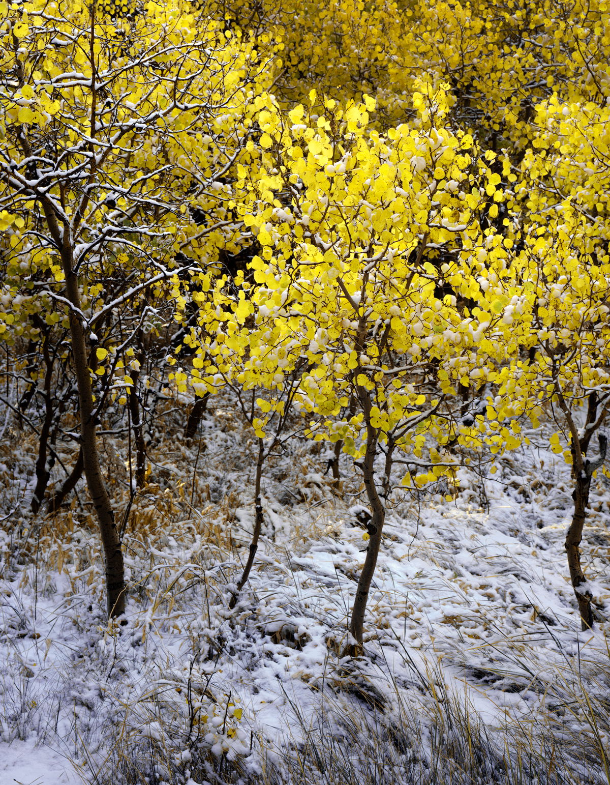 Preston, a fine mix of fall and winter, with the snow contrasting beautifully with the golden Aspen leaves.