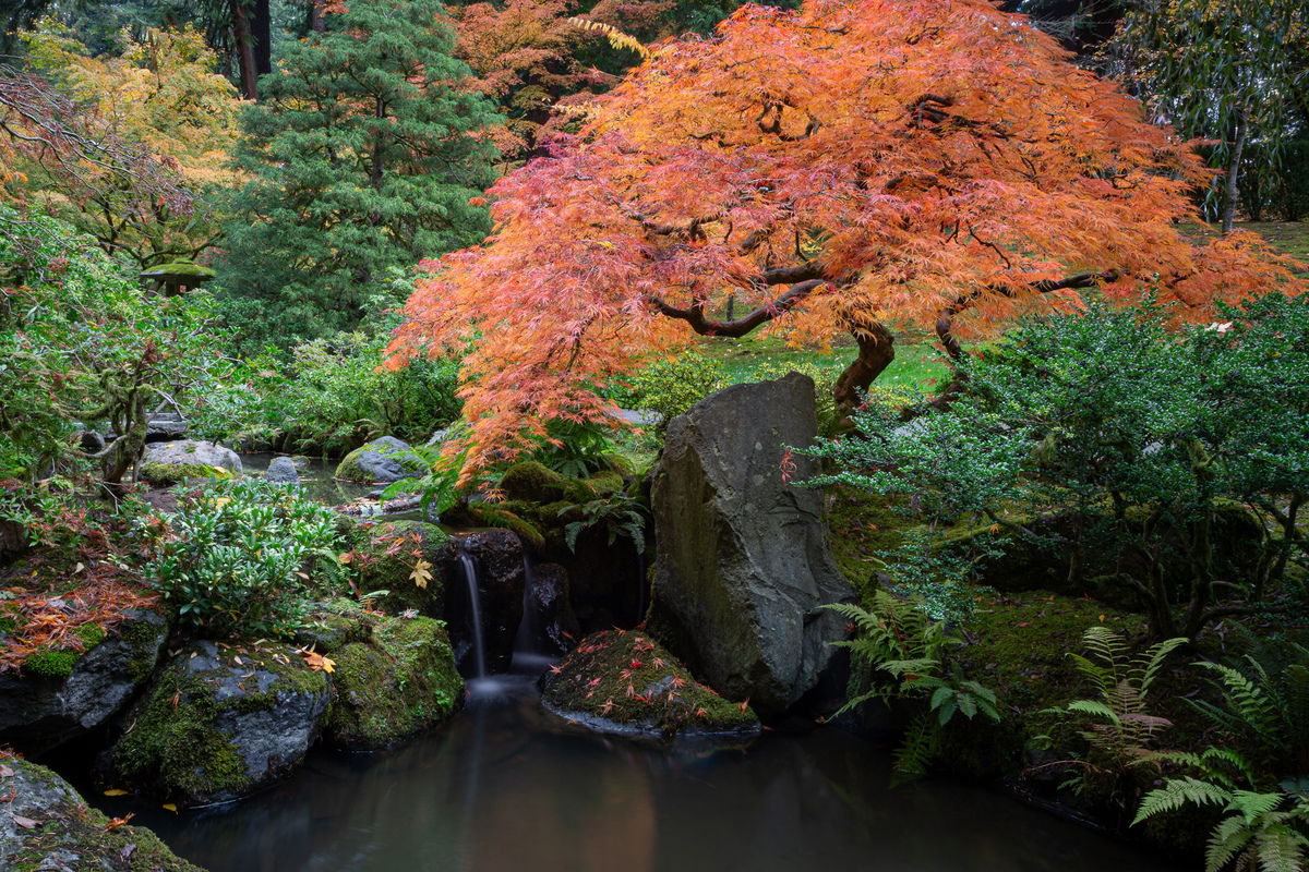 I was captivated by this tree at the Portland Japanese Garden. It’s not the famous one, but its placement near the tiny waterfall made for an interesting composition. Aside from the blown sky, the main challenges were waiting for people to stop taking pictures of it from the other side, and waiting for people walking on the little bridge to get to a different span so the camera would move. It’s a 5 second exposure for the water.