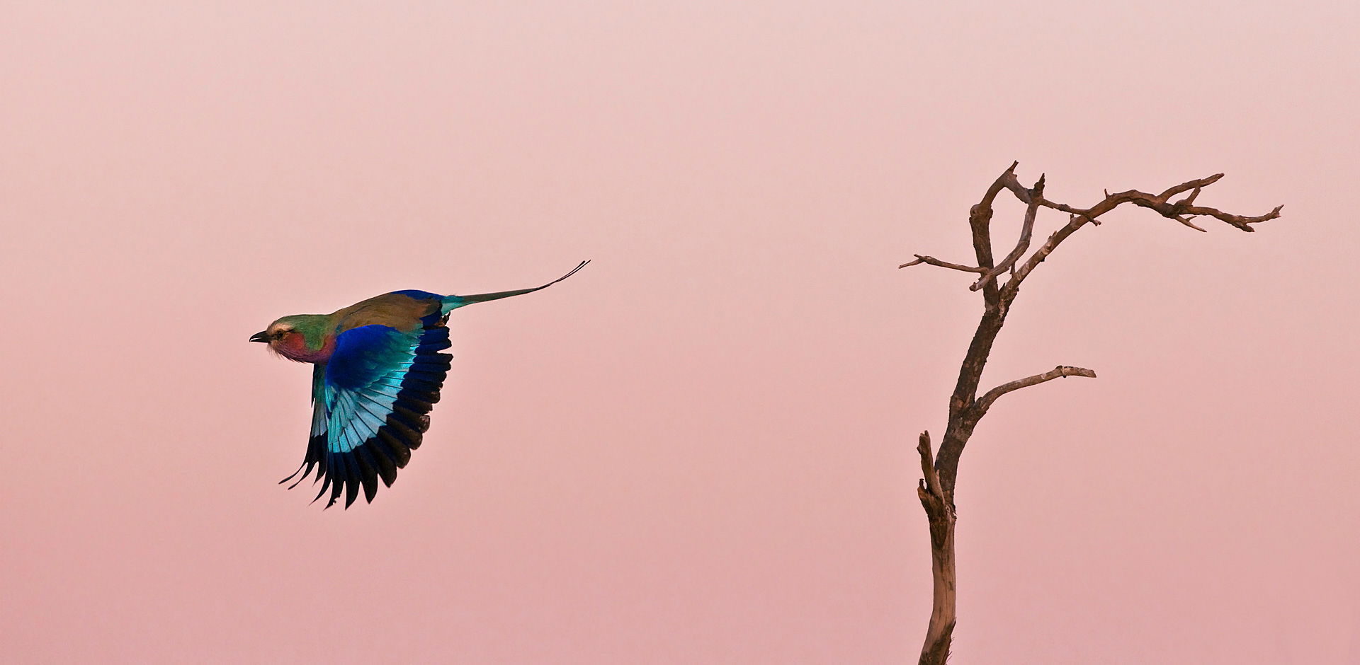 Another oldie, but I just came across it again in my archive. Undoubtedly the most photographed, yet still one of the most beautiful birds in Africa… the lilac-breasted roller, here set against the colours of the rising sun…