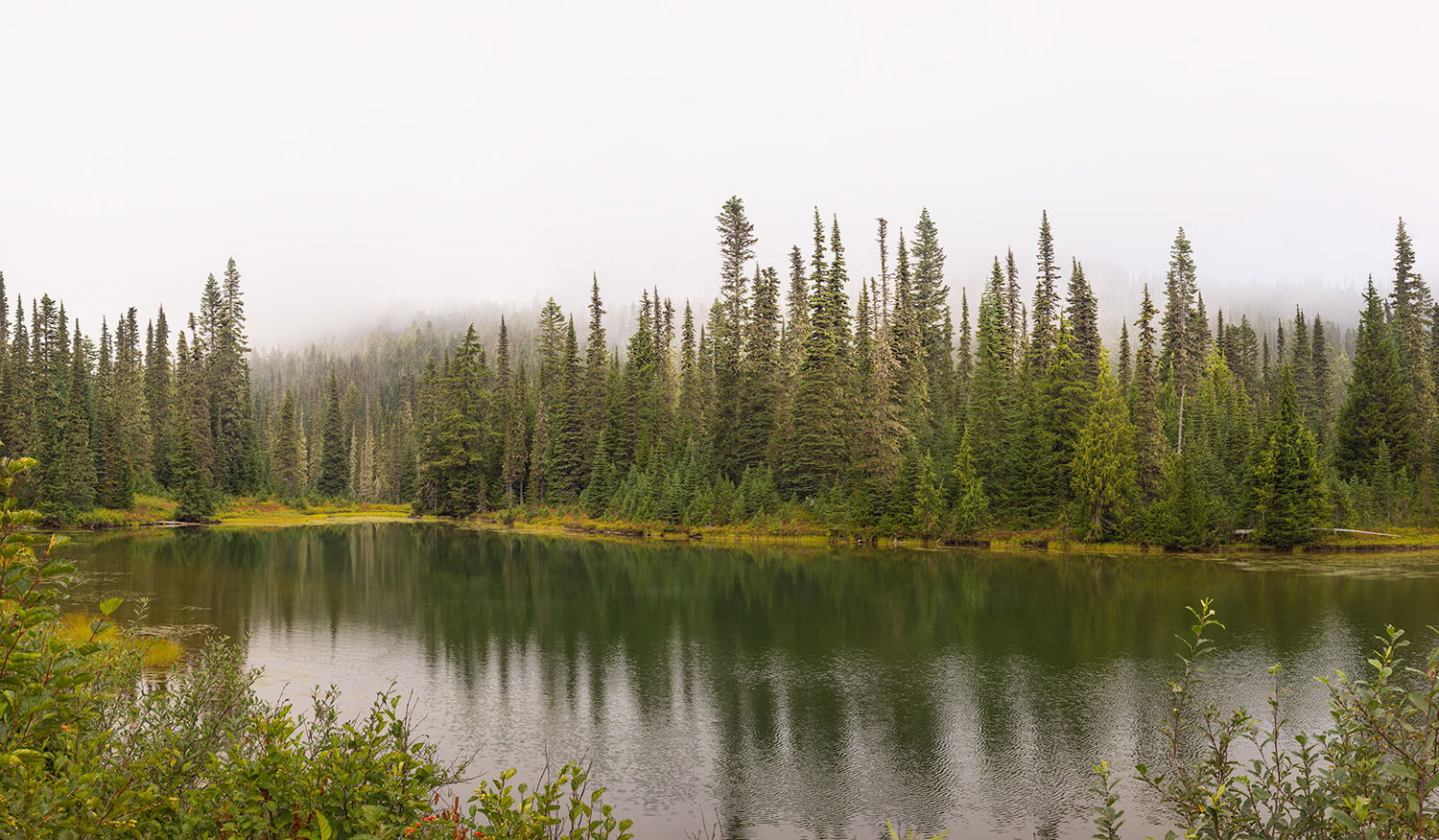 I had booked 5 nights in a RV park near Mt. Rainier National Park in hopes of getting lots of nice photos around the park. Little did I know that mid Sept. was the start of the rainy/foggy season in Rainier. This is Reflection Lake where many people get great reflections of the mountain. The only reflections I got were the trees on the opposite shore.