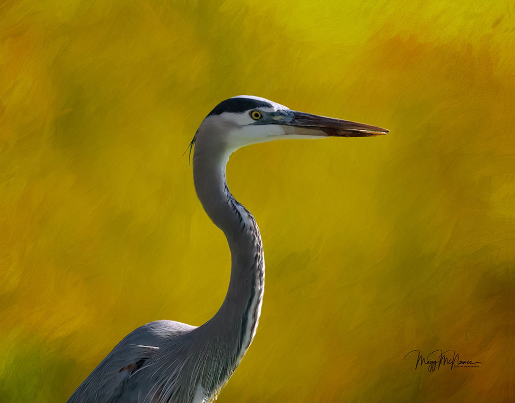 Very nice job on the backlit heron, Megg. Excellent exposure and the plumage detail is good. I really like the bit of light coming over the back. I love the texture you chose, but like Keith, I think it dominates the subject. I find myself looking right past the heron at the background. I’d be interested in seeing the original background. I have replaced backgrounds on occasion, but it’s always been with another I’ve taken of similar habitat by less distracting elements.