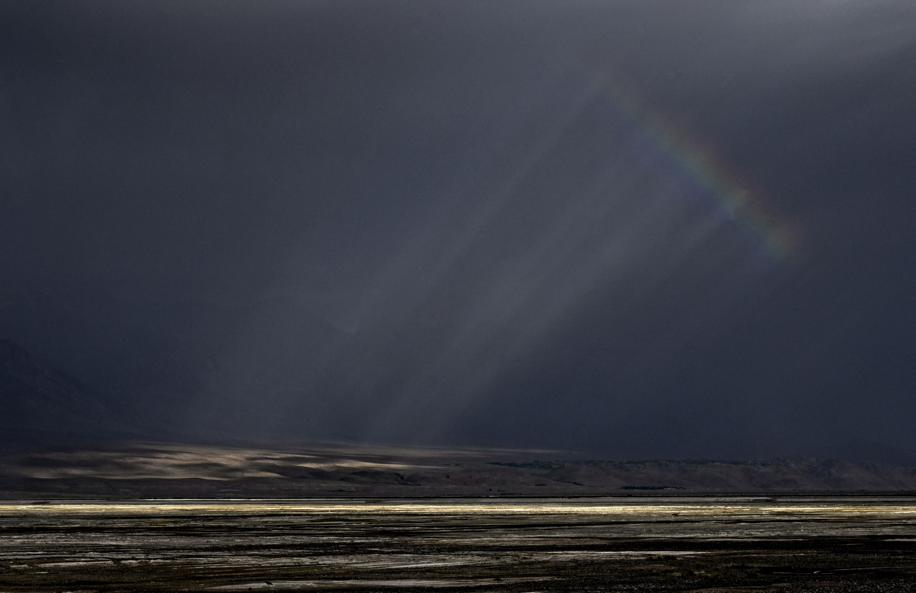 Went out on Owens Lake to photograph birds at dawn, got this other-worldly scene as well. The Eastern Sierra’s intermittent showers often reward the photographer with rainbows and related features.