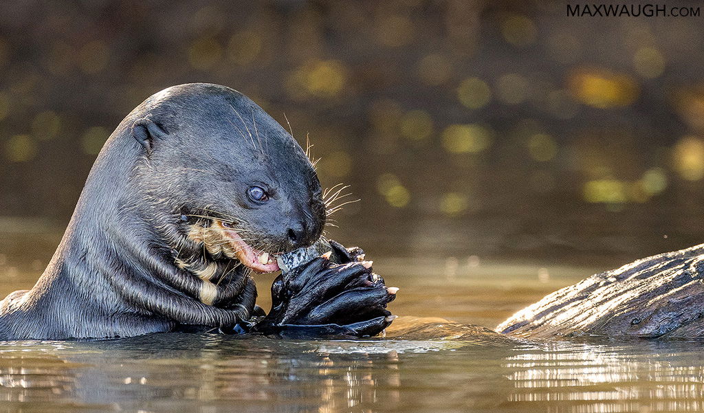 I did my best to take advantage of the setting (and lovely backlight) to try a few different compositions. I do like the wide view quite a bit, as it shows the massive root fall and frankly, is something different for this subject. The close-up otter-eating-fish shots are something I’ve done before. I have included a slightly larger version of the wide, since the otter is so small in the frame.