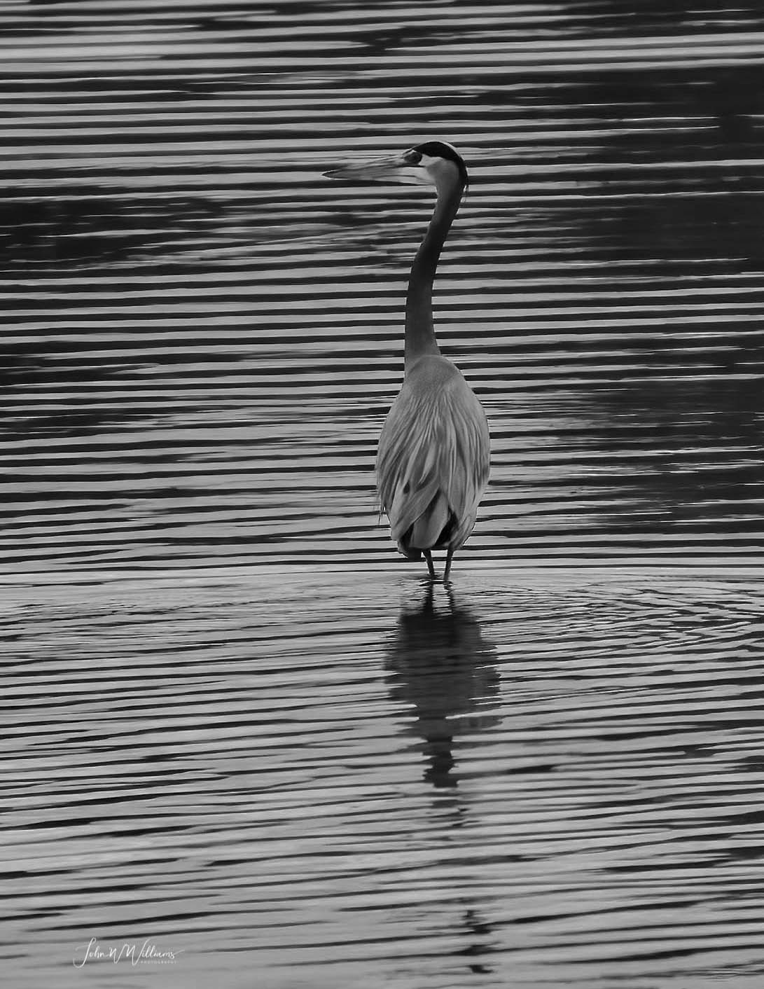 Really strong graphics from the ripples and the heron’s pose in this image, Wayne. To my eye, the ripples seem to overpower the heron a bit, so I’d be tempted to reduce the contrast on them somewhat, if possible. The blues in the heron look rather unnatural to me as well. While they’re called Great Blue Heron’s I never seem to see much blue in them.