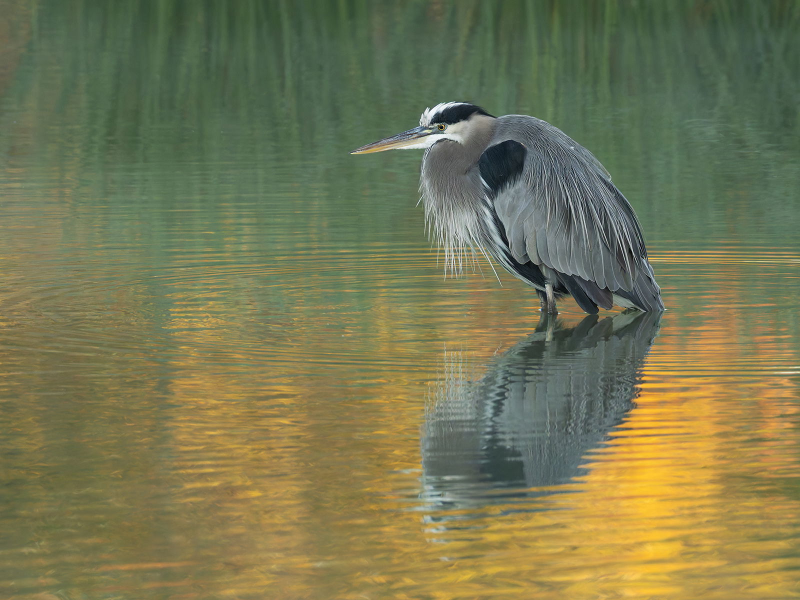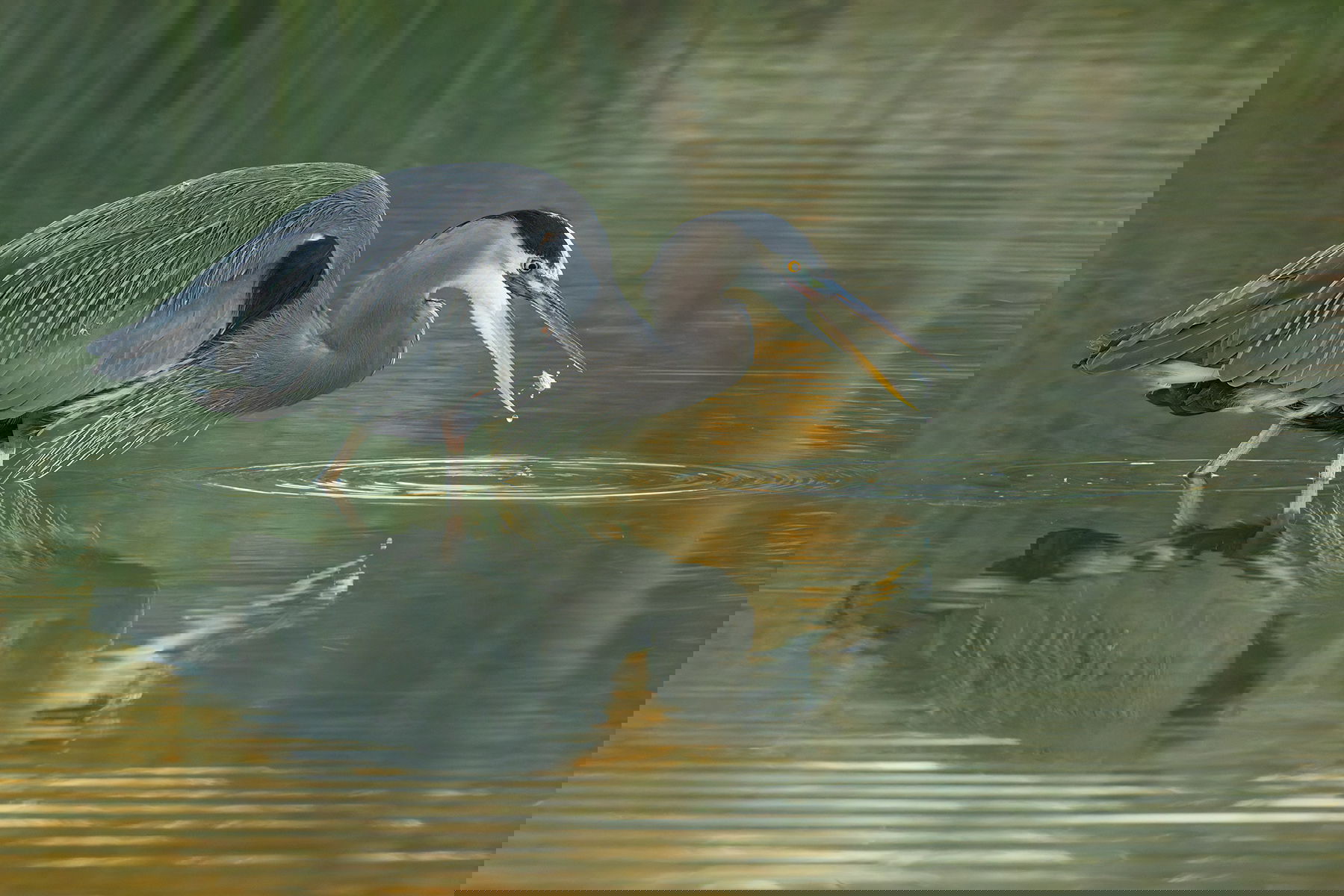 The reed reflections and the gold en light reflecting off the water make a wonderful setting for this heron, Allen. I’m always amazed at the differences in size of the prey these birds consume.