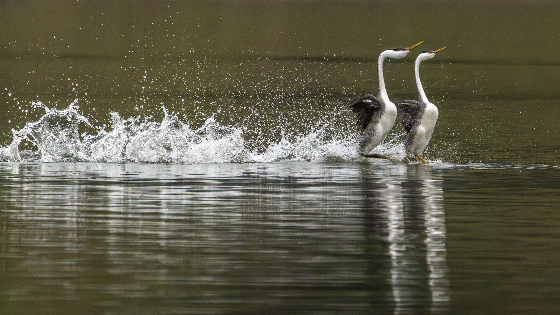 Kent: A terrific capture of the action and your lateral placement of the grebes in the frame works great. My only suggestion would be to crop from the bottom or raise the camera angle a touch to get the birds lower in the frame. The equidistant vertical placement makes the top of the frame look tight to me. That’s a pretty small nit for a marvelous capture. >=))>