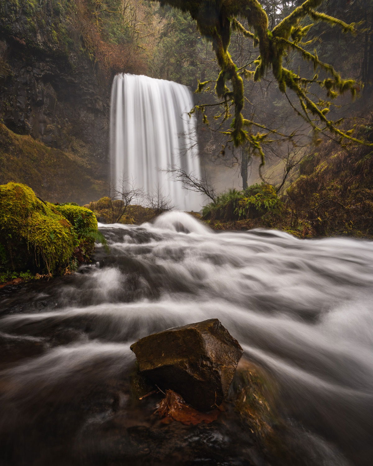 It has been a beautiful downpour here in the PNW lately, now if only the mountains were getting snow instead of rain…fingers crossed! This was shot a few days ago and I have had a few days now to sit and come back for adjustments. A couple things still bother me like the water spot on the top of the frame and not getting a sharper mossy tree in the URC. But with being a single image I was very happy with the result and those two issues are what made the experience great for me. The spray was wild and the wind was cookin’!