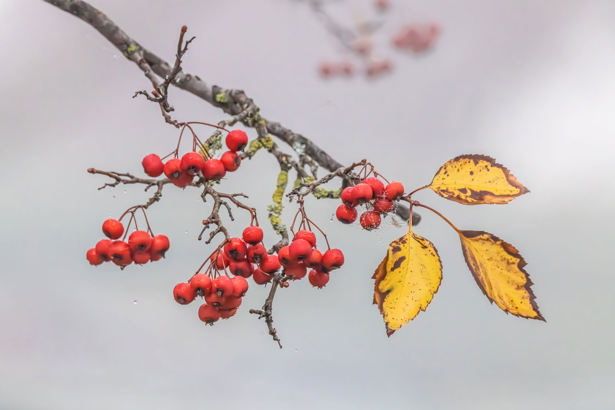The Cedar Waxwings are back at this tree where I have photographed them in the past, but today the light was very low with heavy fog and I wasn’t happy with what I could get of the birds, and I did a few shots of the berries that were more to my liking.