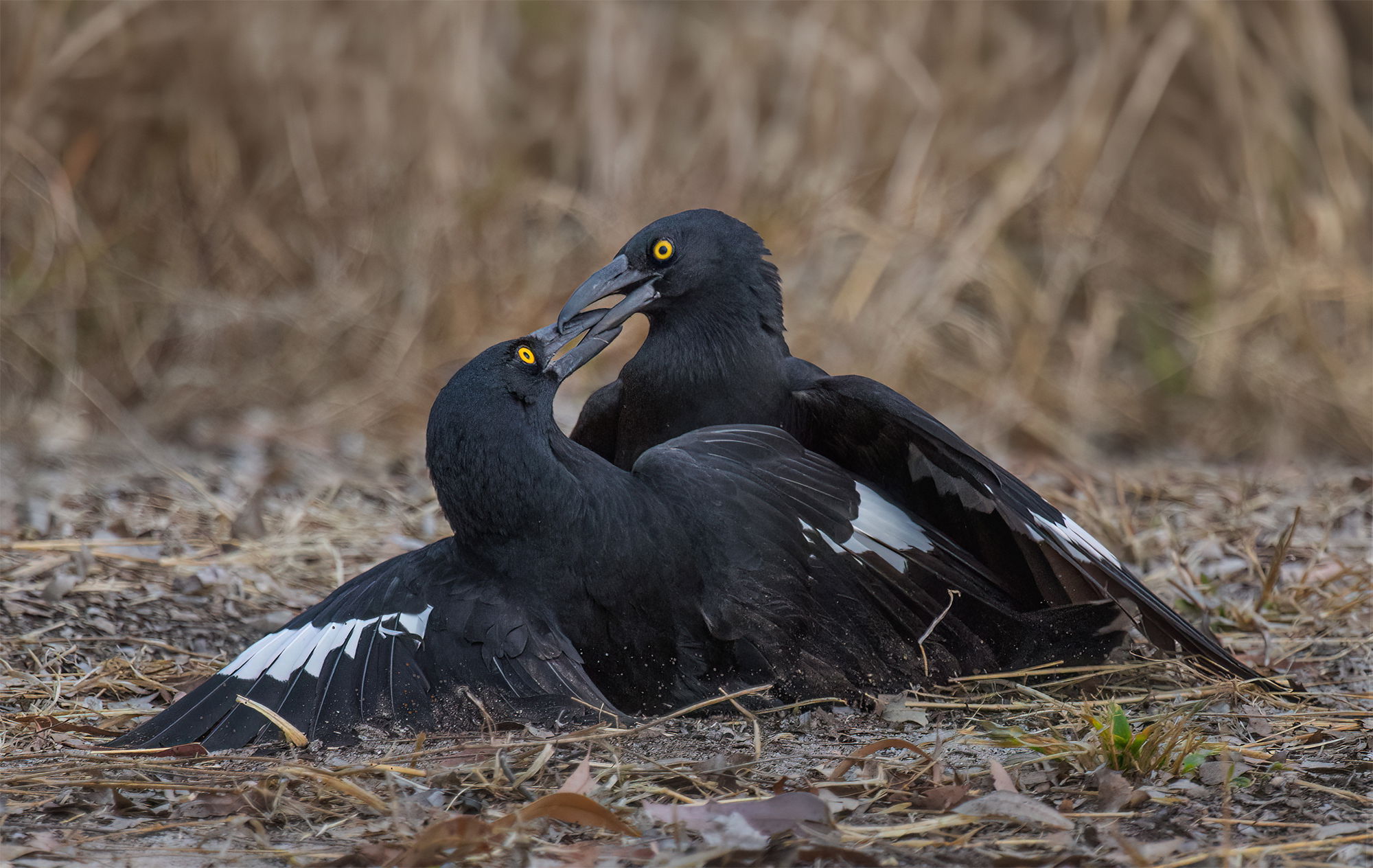 Been there, screwed up a few thousand times, Glennie. At least you got this shot out of it and it’s a beauty. Detail in the blacks is very good and they don’t look washed out. I particularly like the dirt and debris on the plumage which really tells the story of the conflict even more than the interlocked beaks. Very well done.