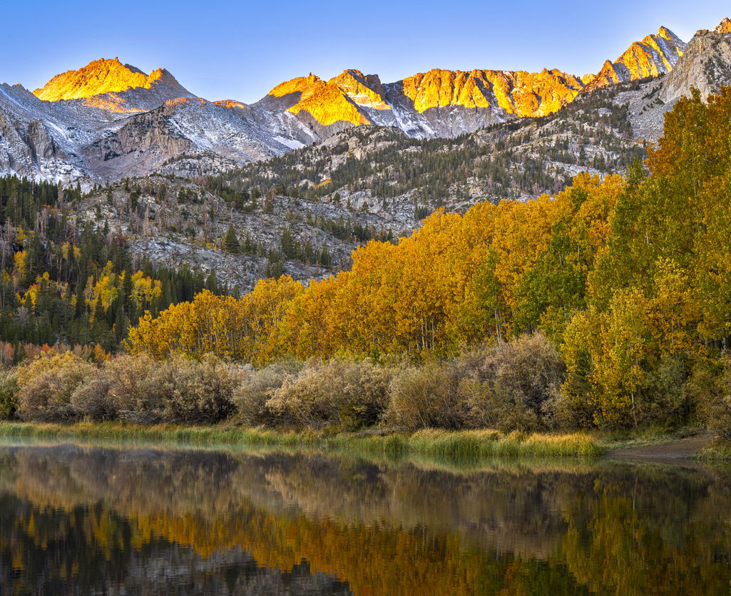 Boy, do I love North Lake in the Sierra! Looks like you hit the area during peak Fall colors as well. I have to congratulate you on a unique composition. Most simply take the short walk from the parking lot and set up behind the reeds in the lake near the outflowing stream but it looks like you took a walk around to the right side in order to catch the morning Alpine glow on the background peaks.